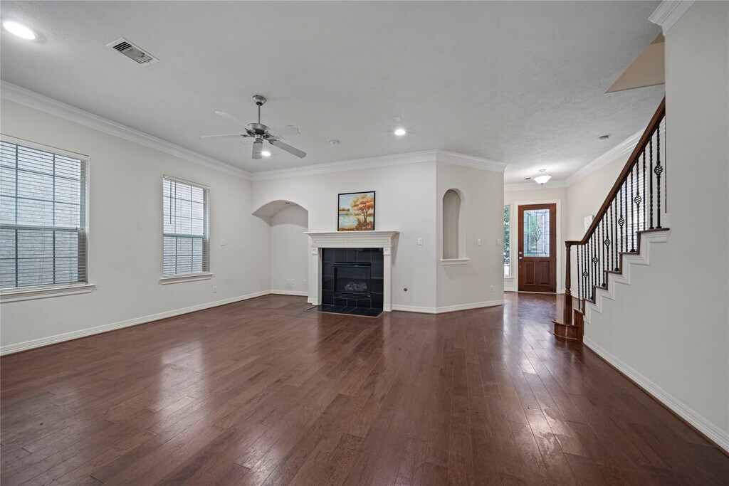 Stunning single-family home located in the gated community of Terraces on Memorial. This home offers soaring ceilings,elegant crown molding,and hardwood floors throughout the first level. The backyard is perfect for entertaining with an extended patio and pergola. The well-designed layout includes spacious living areas on the first floor,three bedrooms on the second floor,and a versatile game room or fourth bedroom with a full bath on the third floor. Enjoy an unbeatable location near Bush Elementary,JP2,and the Terry Hershey Park & Bike Trail. This private gated enclave offers lakeside views,peaceful walking paths,and resort-style amenities—pool,courts,playground,and clubhouse. This is a must-see. Room sizes are estimates. Please verify independently. Refrigerator,Washer and dryer are included! MLS# 9671300