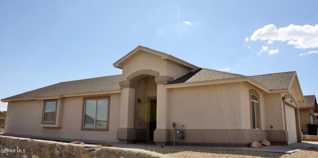 Welcome home to comfort,space,and style in this beautifully maintained Horizon City residence—priced to impress and designed to please. This inviting 4-bedroom,2-bath home features a bright,open kitchen highlighted by gorgeous granite countertops,elegant dark wood cabinetry,and a convenient dishwasher,making everyday living and entertaining effortless. Relax in the spacious primary suite,complete with a dual-vanity master bath,while refrigerated air ensures year-round comfort. A double-attached garage adds convenience,and the home's thoughtful layout offers plenty of room for everyone. Step outside and fall in love with the expansive landscaped backyard—perfect for gatherings,play,or quiet evenings under the covered patio. Situated on a desirable corner lot just north of Eastlake Blvd,this home provides quick access to I-10,Loop 375,and Fort Bliss,combining suburban tranquility with unbeatable connectivity.