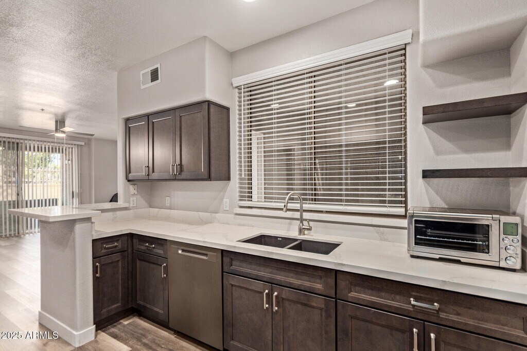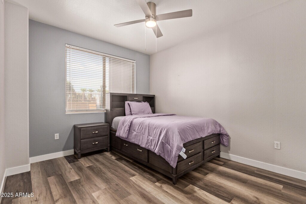 This rare ground floor,two bedroom,two bath townhouse in the gated Premier Condominium community offers a smart blend of convenience and comfort. Spanning 1,046 sq ft,it features low-maintenance laminate and tile flooring,a spacious master suite with walk-in closet,stellar storage thanks to a deep one car garage plus an assigned parking space with a ton plenty of extra parking and stainless appliances with a full size washer and dryer in unit. Relax on your private patio or enjoy the pool,spa,and clubhouse amenities. Centrally located with no freeway crossings to ASU,a great value in Tempe living!