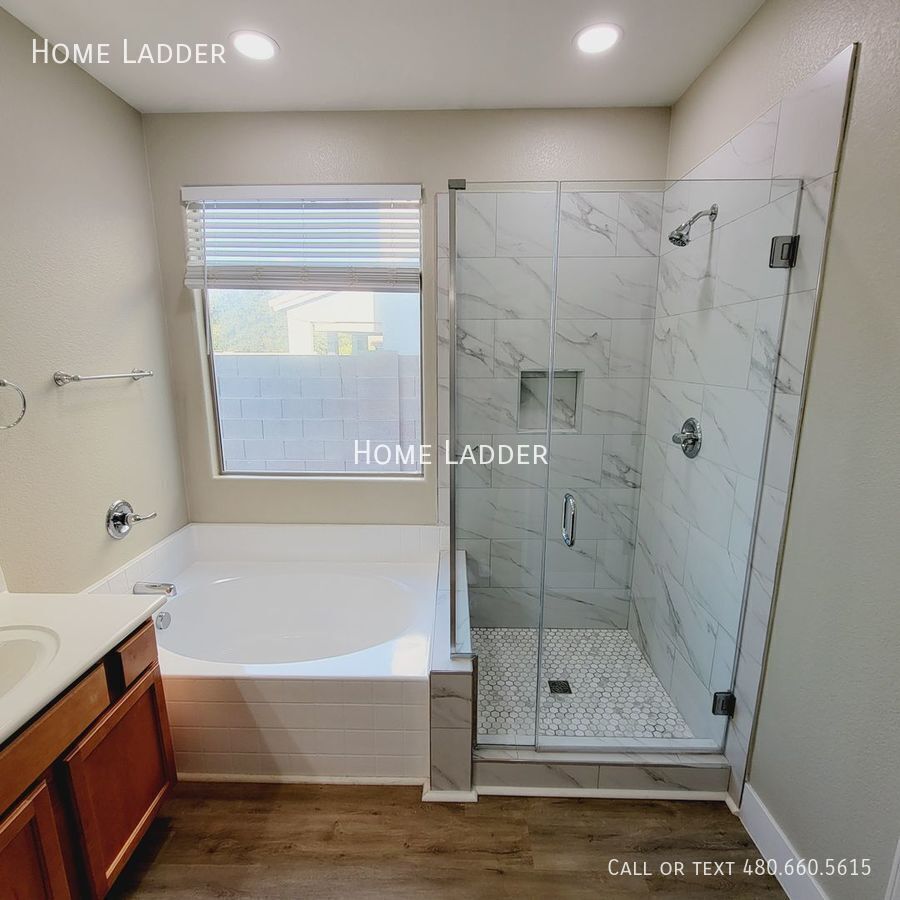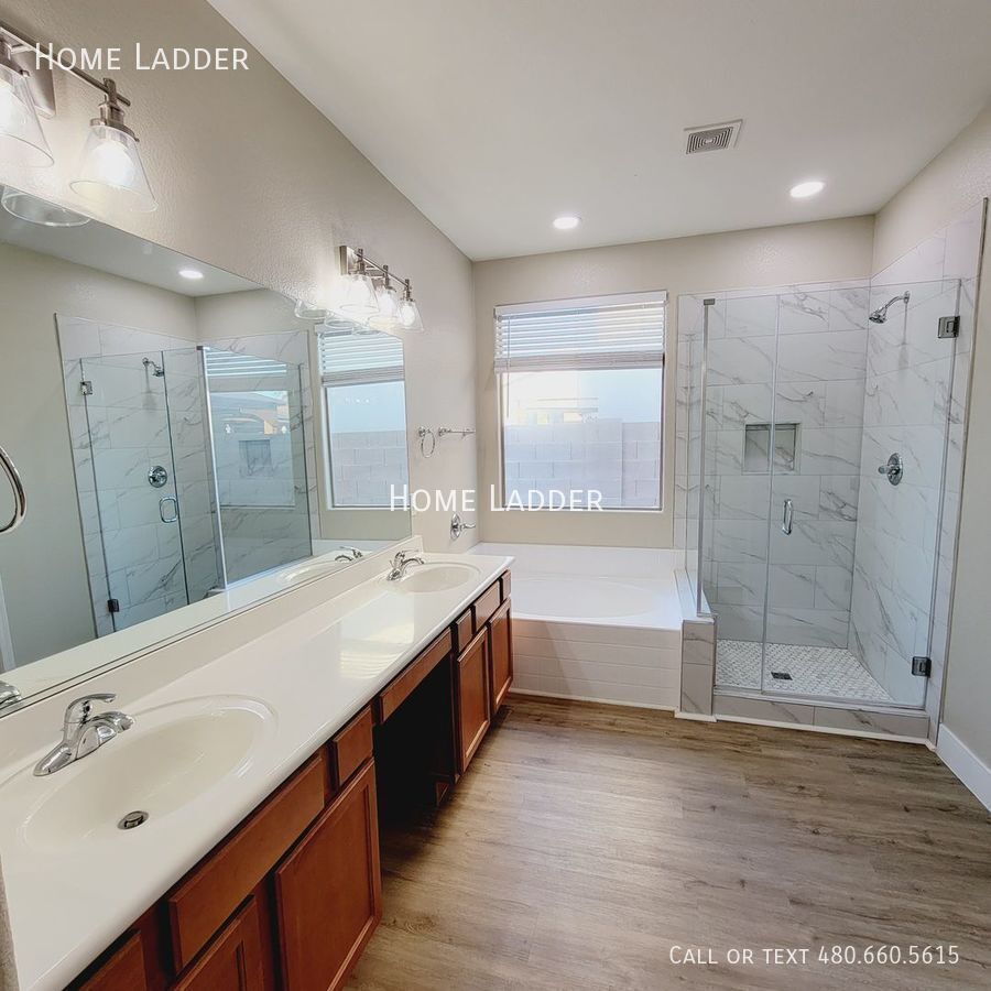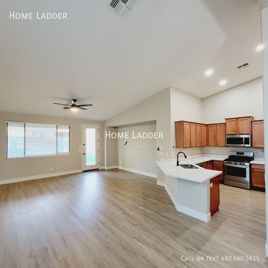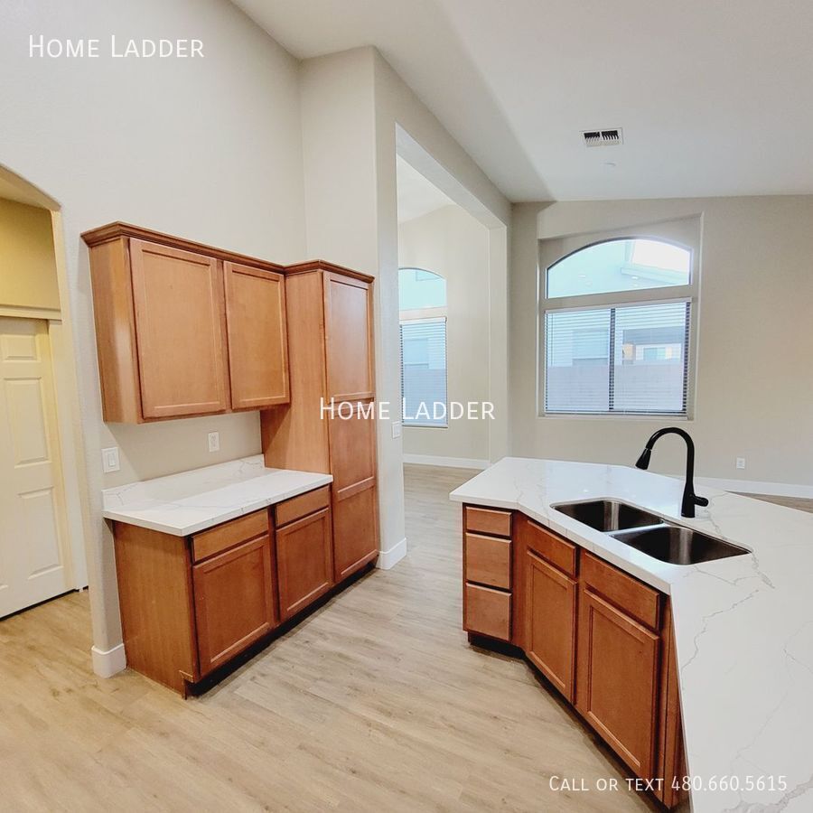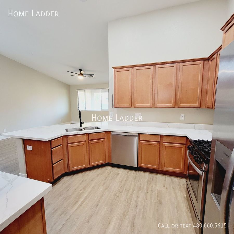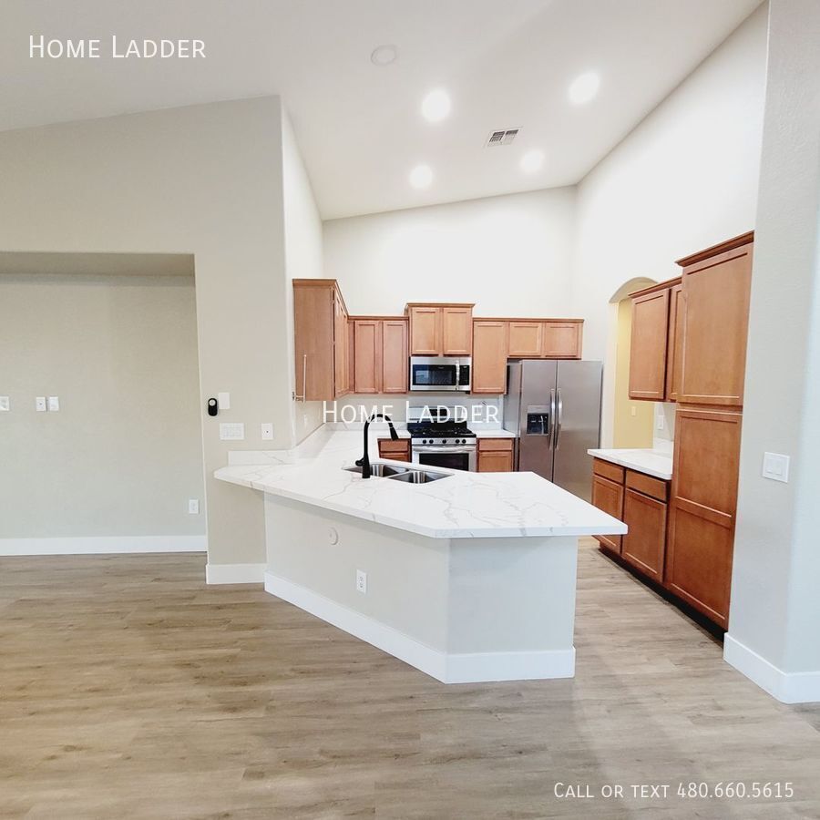Welcome to your dream rental in the heart of Surprise! This stunning 3 bed, 2 bath home combines style, comfort, and functionality. Step inside to luxury vinyl plank flooring throughout, upgraded fixtures, and light/fan combos in every bedroom for year-round comfort. The open-concept kitchen features sleek stainless steel appliances, gorgeous white stone countertops, and a peninsula island that flows into a spacious living room with soaring vaulted ceilings. The primary suite is a true retreat with a large walk-in closet and a spa-like ensuite complete with a soaker tub and dual vanity sinks. Outside, enjoy Arizona living with a covered patio and low-maintenance turf grass, perfect for relaxing or entertaining. Don’t miss out on this beautiful, move-in ready home! All Home Ladder residents are enrolled in the Resident Benefits Package (RBP) for $50/month, which includes renters insurance, credit building to help boost your credit score with timely rent payments, $1M Identity Protection, HVAC air filter delivery, our best-in-class resident rewards program, and much more! More details upon application. Additional monthly fees: $9 admin and $35 pet rent/pet. One-time fees: $49 application fee per adult, $149 pet application per pet, $195 administration, and a security deposit equal to one month’s rent. This property qualifies for our security deposit alternative—move in with less upfront cost! 12-18 month minimum lease term. If moving in between 7/1 and 1/31, the lease term shall be 18 months. If moving in between 2/1 and 6/30, the lease term shall be 12 months. Lease must commence within 21 days of application approval. After approval, security deposit must be delivered to our office by 5pm on the next business day. The lease must start Monday-Thursday and not on any federal/state holidays. Oven Stove