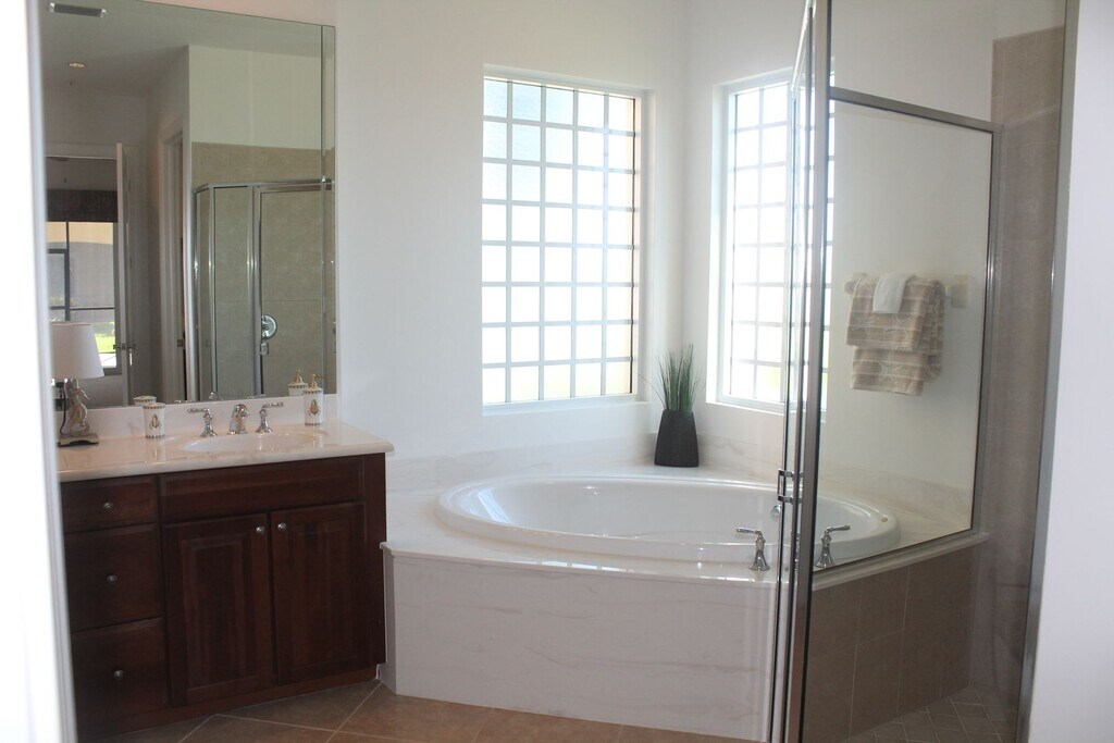 Annual 12 month furnished annual lease only. AVAILABLE May 1-2026.... Spacious and Bright 3 bedroom-2.5 bath ground floor Condo in popular Hammock Bay Community in South Naples...Close to Marco Island ! Fully Furnished with stylish Traditional decor....Florida Flair color palate and hints of the Tropics throughout. Large kitchen with Island featuring granite Counters and Stainless steel Appliances...plenty of cupboards... Open-Airy Living/Dining Combination area that extends out to the screened balcony area overlooking the Hammock Bay Golf Course and Inland Lake. Master Bedroom offer a King size bed and en-suite bath with dual vanity sinks-soaker tub and oversized walk-in shower. Access to the balcony from the Master Bedroom too! Guest Bedroom #1 has a Queen size bed. Guest Bedroom #2 has a 2 Twin size beds. Guest Bath has a tub/shower combination. Full laundry room. Garage Heated pool on site No smoking No pets Tenant pays all utilities including cable and internet Background/Credit Check Fee: $50 Association Application and Fee