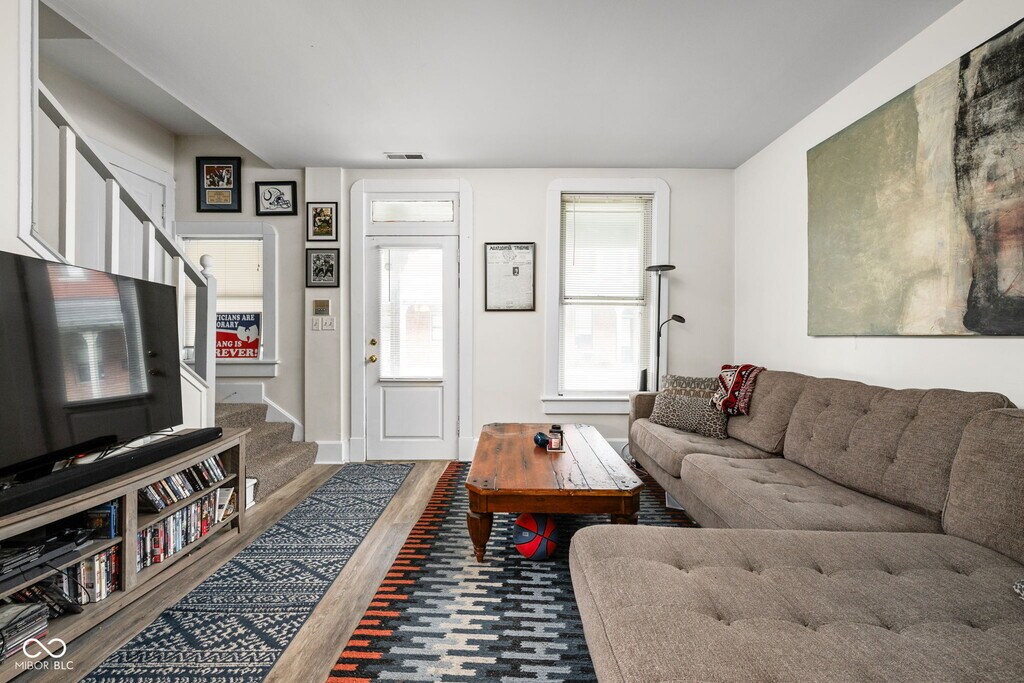 Welcome to this beautiful,updated townhome in the heart of downtown Indianapolis. Featuring two spacious bedrooms,one and a half baths,a large main floor living space,and a basement bonus room. The main and upper floors have vinyl plank flooring,high ceilings,a beautiful decorative fireplace,and classic historic charm that can only come from a building listed on the national historic registry. Washer and dryer are included,and are conveniently located upstairs near the bedrooms. Both the upstairs full bath and the downstair half bath have been updated. The unit has dedicated,indoor,secured parking right outside the basement door,with the option for a second parking space available for a fee of $50 per month. Located steps away from the Red Line and the new IU Health Methodist Hospital expansion and medical school,this property is a short distance from all that downtown has to offer,including the Stutz,Canal Walk,and fantastic bars and restaurants. Based on information submitted to the MLS GRID as of [see last changed date above]. All data is obtained from various sources and may not have been verified by broker or MLS GRID. Supplied Open House Information is subject to change without notice. All information should be independently reviewed and verified for accuracy. Properties may or may not be listed by the office/agent presenting the information. Some IDX listings have been excluded from this website. Prices displayed on all Sold listings are the Last Known Listing Price and may not be the actual selling price.
