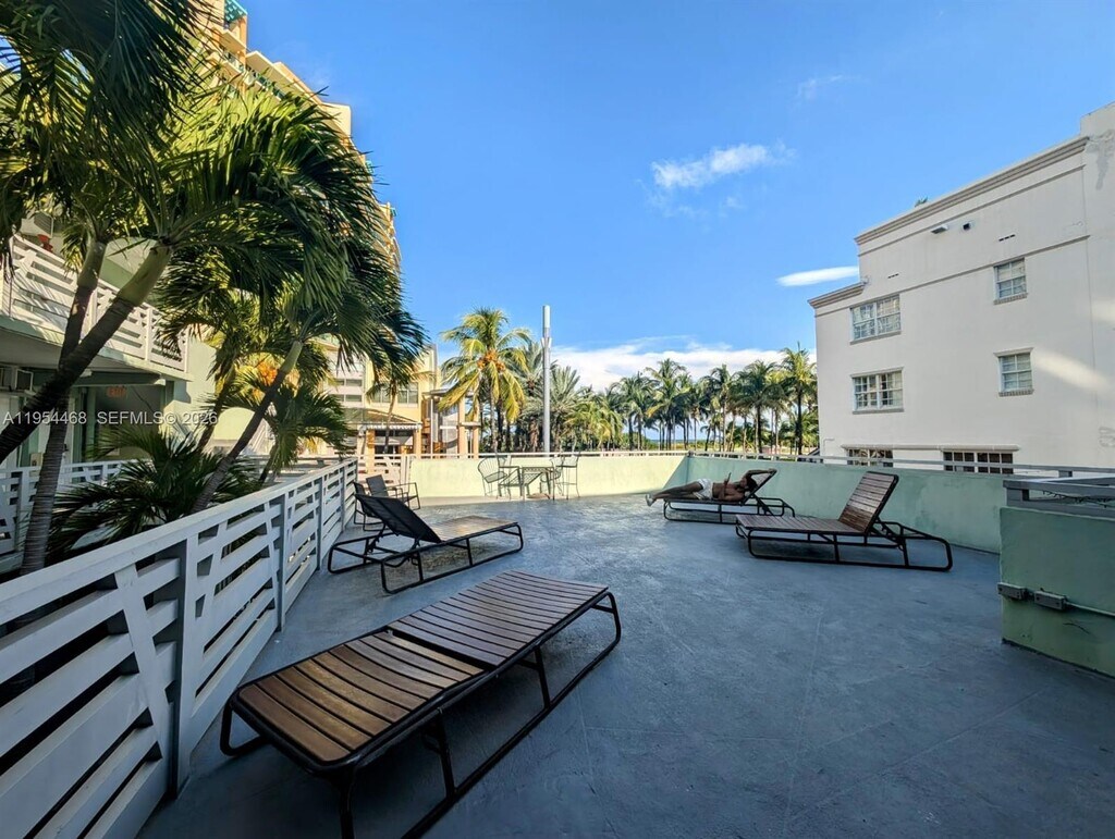 Spacious, fully furnished studio featuring two queen beds and a bright, open layout. The unit has been updated with a modern kitchen and new flooring throughout, offering a clean and comfortable living space. Located on Ocean Drive, directly across from Lummus Park and the beach, this apartment puts you just steps from the ocean, walking paths, cafés, and everything South Beach has to offer. The building includes a rooftop sun deck and on-site washer and dryer for added convenience. Move-in ready and ideal for those looking to enjoy the South Beach lifestyle in a well-maintained, updated space. MLS # A11954468