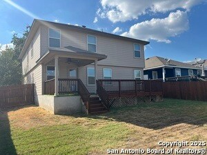 Welcome to this stunning home located in the vibrant city of San Antonio, TX.This property boasts an array of amenities that cater to a comfortable and convenient lifestyle. Situated on a corner lot, the home features an open floor plan with a huge kitchen island--the perfect layout for relaxation and entertainment.The primary bedroom is conveniently located downstairs, while an upstairs gameroom adds an extra layer of entertainment space. The four secondary bedrooms share two full bathrooms. Double water heaters in the garage assure plenty of hot water in the house. Step outside to a covered patio and large deck, overlooking generous yard space enclosed by a privacy fence. A storage shed is also included for additional storage needs. The home is fitted with ceiling fans in all rooms and a water softener system for added comfort. As part of the Northside ISD, this home is in a great location for education. The neighborhood also offers a pool and park, providing recreational activities just a short walk away. This home truly offers a blend of comfort, convenience, and lifestyle.