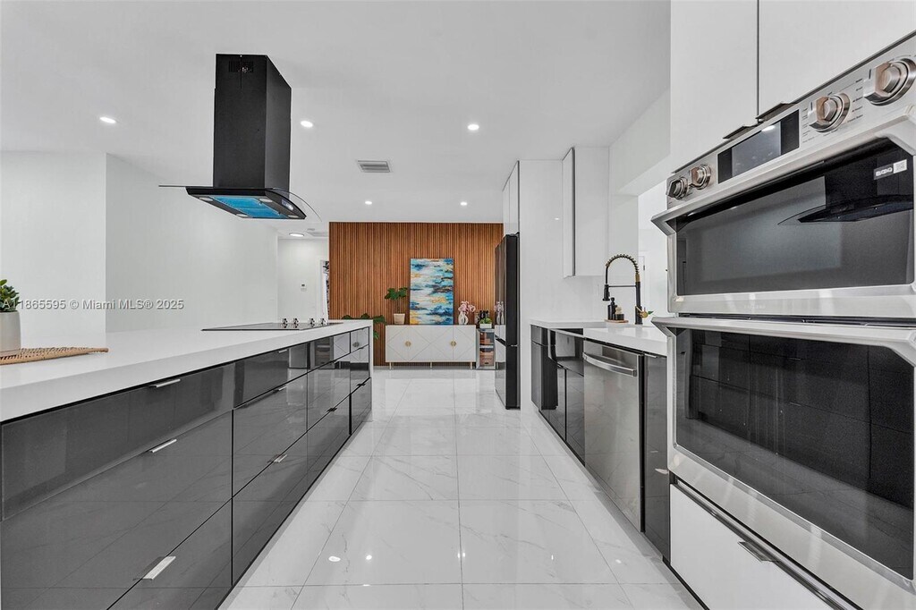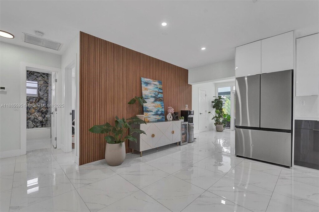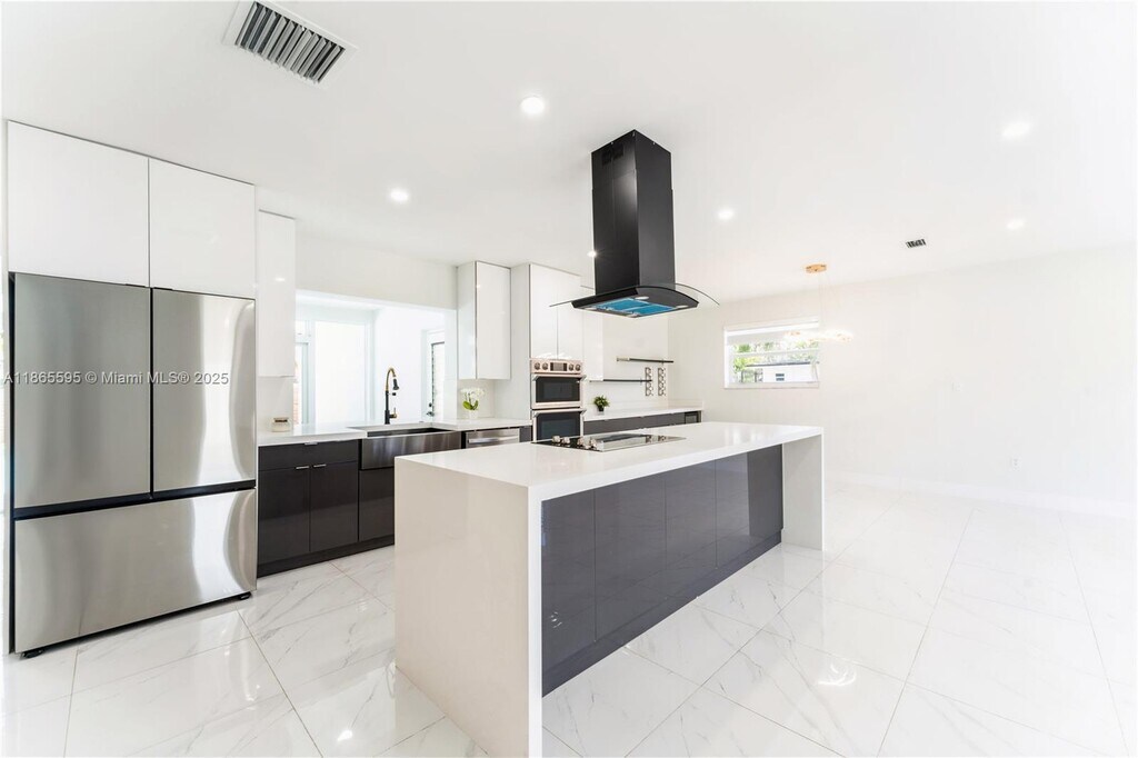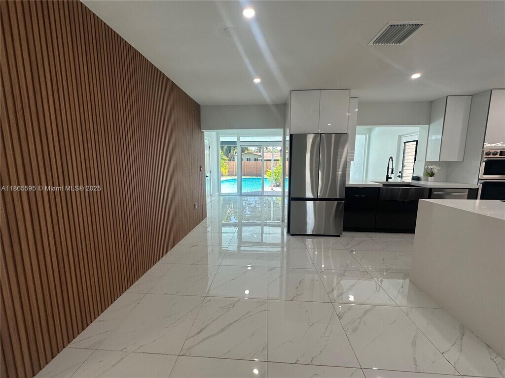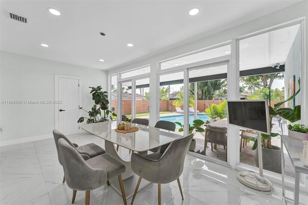 3 BEDROOM 2 BATH PLUS EXTRA ROOM on an oversized 8,750 sq. ft. corner lot just 1.6 miles from the Beach and Hollywood Circle. This open-concept retreat invites you into the Hollywood lifestyle with seamless indoor-outdoor living. Enjoy a spacious Florida room, sunlit patio, and sparkling pool perfect for gatherings. The Italian-inspired kitchen features a 9ft quartz island, premium Samsung appliances, and a wine bar designed for entertaining. A versatile air-conditioned garage offers office or flex space. With impact windows/doors, privacy fencing, and room to park your boat or RV, this home blends modern design with coastal ease. Easy to show contact listing agent today!