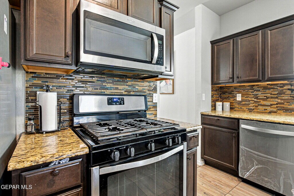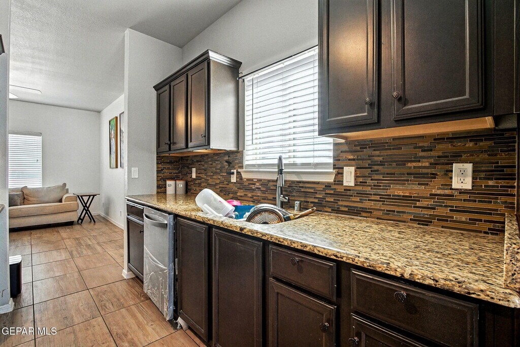 Welcome home to this 3 bedroom 2 bath home. This property boasts with pride of ownership from the time you drive up throughout! This home is located in the Far East of El Paso. Featuring an open floor plan walking into the home you have a nice family room,the two minor bedrooms and a guest bath. Walking towards the middle of the home you have an open kitchen with a nice island and large eating area. The master bedroom is split form the two minor rooms. Out back there is a nice porch to sit and drink your coffee on those cool morning. In the back yard is also a new separate storage area perfect for a man or woman cave or simply a place to store things. This home is available for move in December 23rd. Schedule your showing today.