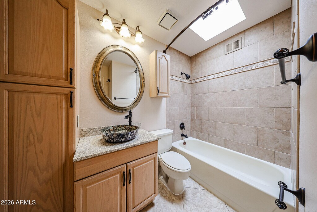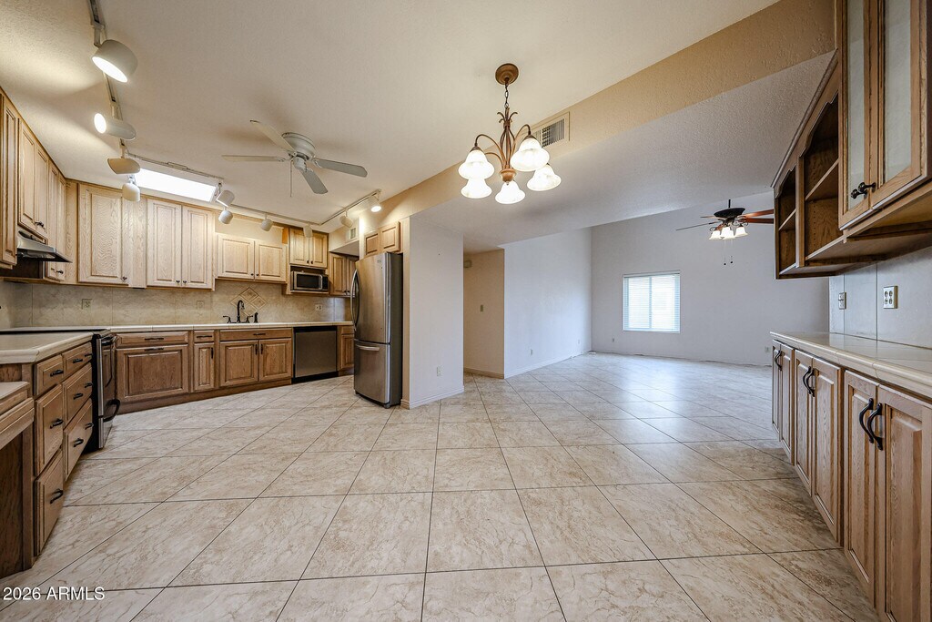 3 bedroom,2 bath with a 1 car garage ** Great Room has vaulted ceiling and is open to the updated Eat-in kitchen which has with lots of cabinets as well as Pull-out drawers in lower cabinets ** Both baths have been updated with tile in the showers,Master bath has tiled counter,Hall bath has granite counter with a vessel sink ** 20 inch tile in all the right places with carpet in the bedrooms ** Skylights add natural light in the kitchen and baths ** Private back yard with covered patio and a storage shed ** Additional soundproofing between units ** Minimum income is $5400 a month with average credit and steady job history ** Total due each month is $1717 which includes the rent,sewer,trash and a 1% tenant service fee **