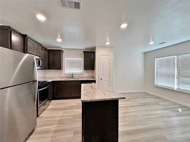 MOVE-IN SPECIAL! $325.00 OFF YOUR 2ND FULL MONTHS RENT! This charming single-story 3-bedroom, 2-bath home offers both comfort and style. An open-concept layout connects the kitchen, family room, and dining area, creating a welcoming space ideal for gatherings and everyday living. The primary suite provides a relaxing retreat with tranquil backyard views, an ensuite bath, and a spacious walk-in closet. The home features thoughtful upgrades including granite countertops, stainless steel kitchen appliances, luxury vinyl plank flooring, and a full washer and dryer. Additional highlights include a split-bedroom design for added privacy, a two-car garage, and a fenced backyard with a covered patio—great for outdoor enjoyment. Conveniently located near major highways, with easy access to shopping, dining, and commuting routes. Owner must approve all pets.
