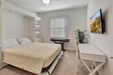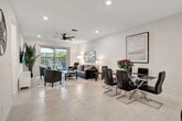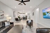 Welcome to this meticulously maintained and beautifully upgraded 2021-built villa. Designed for both comfort and convenience, this home offers impact windows, smart home technology, and an open-concept layout with vaulted ceilings, recessed lighting, and premium finishes. The gourmet kitchen is a chef's dream, featuring marble quartz countertops, a stylish backsplash, soft-close cabinets, additional oven space, and GE appliances. Thoughtful upgrades continue throughout the living space where you'll find a built-in Murphy bed with extra storage in the guest bedroom, added closet shelving in both bedrooms, and extra storage in the garage, attic (pull-down access with flooring), and laundry room.