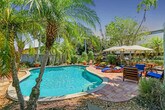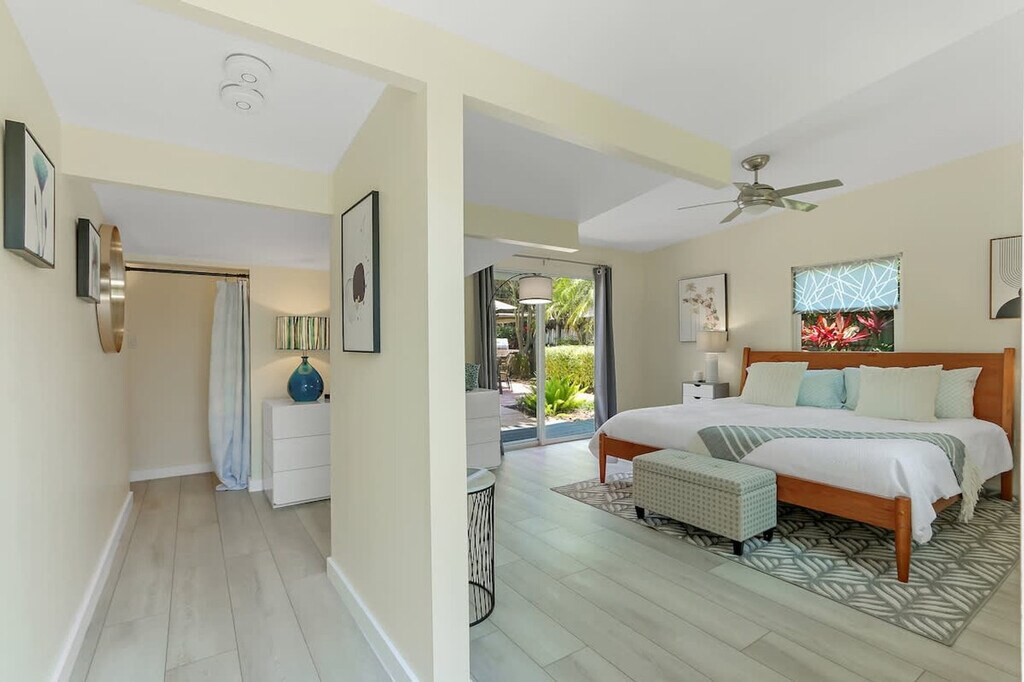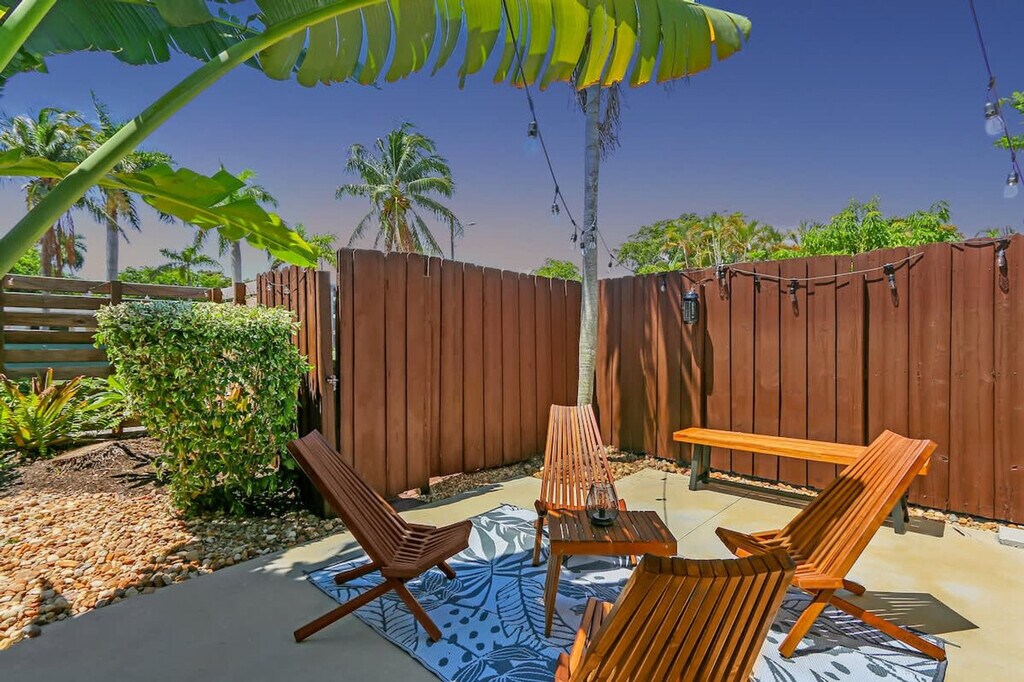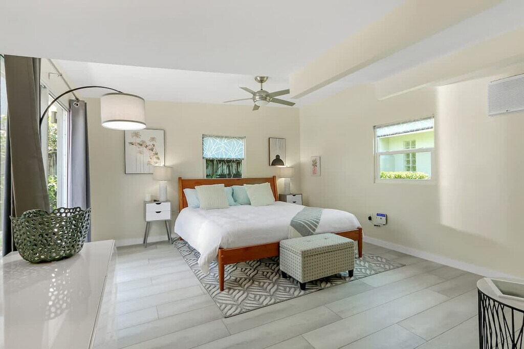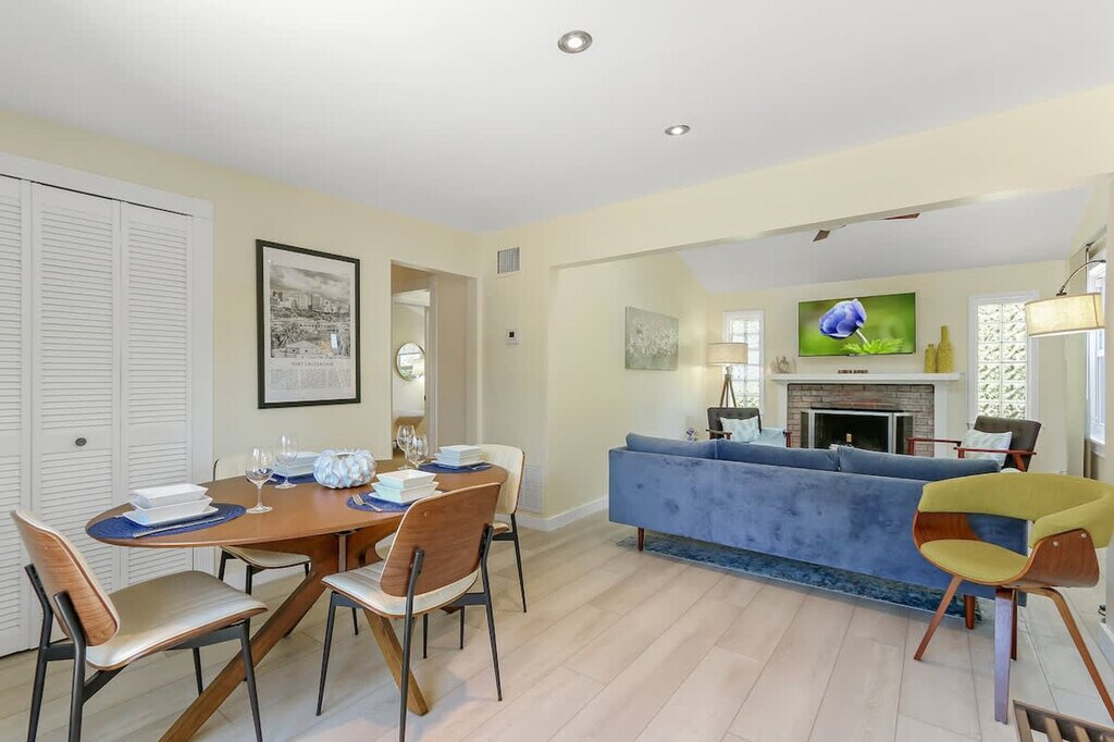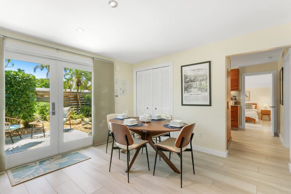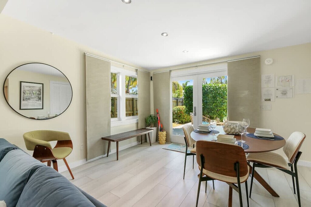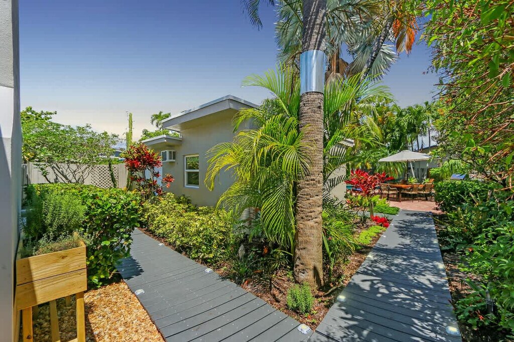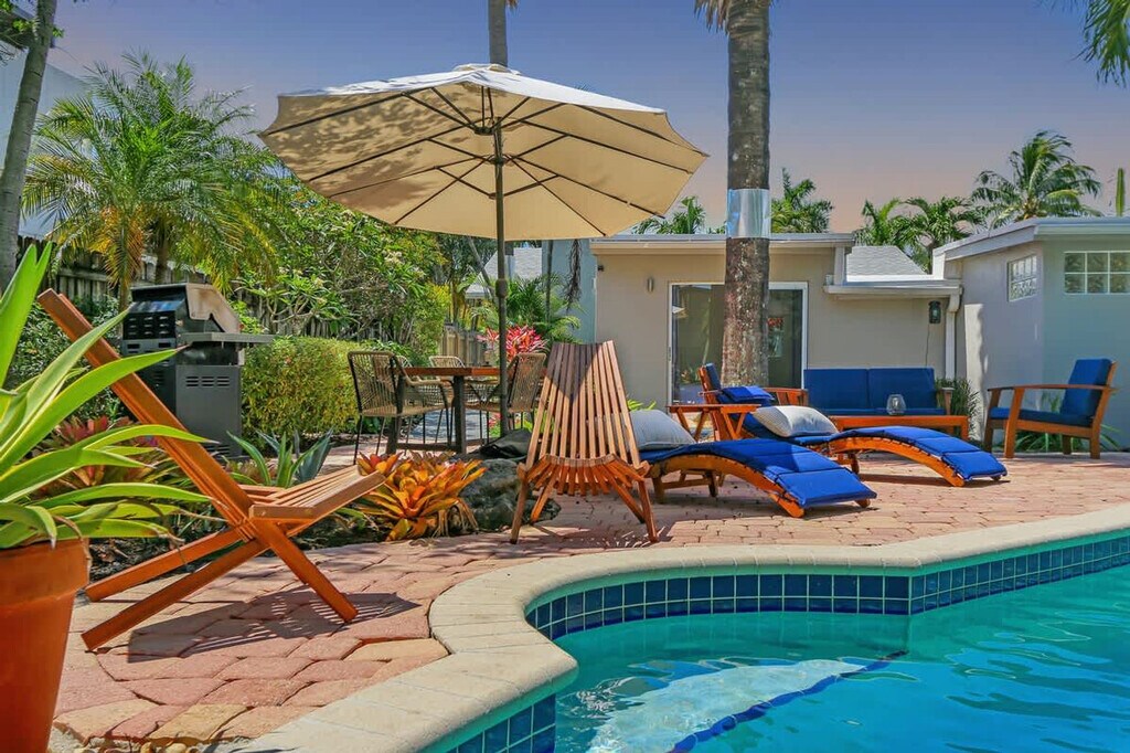 Feel at home in this stylish 3-bedroom home offering beachy vibes with lush landscaping and a newly modern fence. This home features cozy brown furniture to match the natural feel, a heated pool, smart TVs, premium beds, towels, linens, and toiletries. The main house features 2 bedrooms with a modern bathroom plus the entire living space, dining, and kitchen. The guest house, accessible from the backyard, features 1 master bedroom with a king-size bed and private modern bathroom with a view overlooking the pool. This is a dog-friendly property. The pool can be heated for an additional $50 per day with at least 48 hours' notice prior to check-in. Onsite free parking is available for 3 vehicles. Located 3 miles from the beach and 4 miles from Las Olas Blvd, this home is also 13 miles from Fort Lauderdale Airport. Please clean up after using the BBQ, or an extra $50 cleaning fee might apply. The landscaper will be entering the property for scheduled lawn maintenance every 15 days, and the pool technician will conduct pool maintenance twice a week. No smoking is allowed inside the house. [SI]