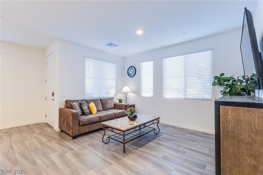 Furnished, brand-new 4-bedroom, 3-bath townhome with a loft, located in the vibrant and growing Water Street District of Henderson—just minutes from local restaurants, cafes, breweries, shopping, and community events. This thoughtfully designed layout features a full bedroom and bath downstairs, ideal for guests, multi-gen living, or a home office. The kitchen includes quartz countertops, stainless steel appliances, and ample cabinet space, opening to the main living area for a seamless flow. Upstairs offers a spacious primary suite with a walk-in closet, ensuite bath, and private balcony, along with two additional bedrooms and a versatile loft perfect for a second living space or workspace. Enjoy easy access to major roadways, parks, and all the charm and convenience the Water Street area has to offer.