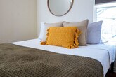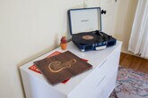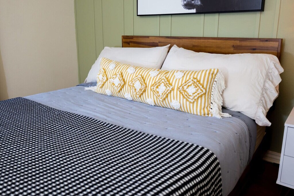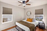 Feel at home in this charming 3-bedroom, 2-bathroom retreat in Fayetteville, Arkansas. Ideal for families, friends, and Razorback fans, this single-level home offers seamless access to vibrant Dickson Street and the University of Arkansas. Enjoy the convenience of a fenced yard, perfect for pets and children, and a private driveway with parking for up to three cars. Relax in the stylishly designed living area, complete with plush seating, a smart TV, and a record player. The dining area comfortably seats four, making it perfect for family meals or game nights. The fully equipped kitchen features a gas range, Keurig coffee maker, blender, dishwasher, and a stocked pantry, ensuring you have everything you need for any culinary adventure. Enjoy the convenience of free parking for up to three cars, with room for two larger vehicles. A pet fee of $75 per dog per stay applies, with a maximum of two well-behaved dogs allowed. Unfortunately, cats are not permitted. Located in the heart of Fayetteville, this home offers the perfect balance of city convenience and natural beauty. Walk to Dickson Street’s bars, live music venues, and eateries, or explore the University of Arkansas campus. Nearby attractions include the Walton Arts Center, TheatreSquared, Wilson Park, and scenic trails, all just minutes away. Quiet hours are from 8 PM to 8 AM. Smoking is prohibited indoors, with a $1,000 remediation fee for violations. All overnight guests must be registered, with unregistered guests incurring a $50 per person per night charge. No parties or events are allowed without prior host approval. Check-out is at 10 AM, with late check-out fees applicable. Stay productive with fast Wi-Fi and a dedicated workspace, perfect for remote work. When it's time to unwind, enjoy the record player, board games, and smart TVs throughout the home. [SI]