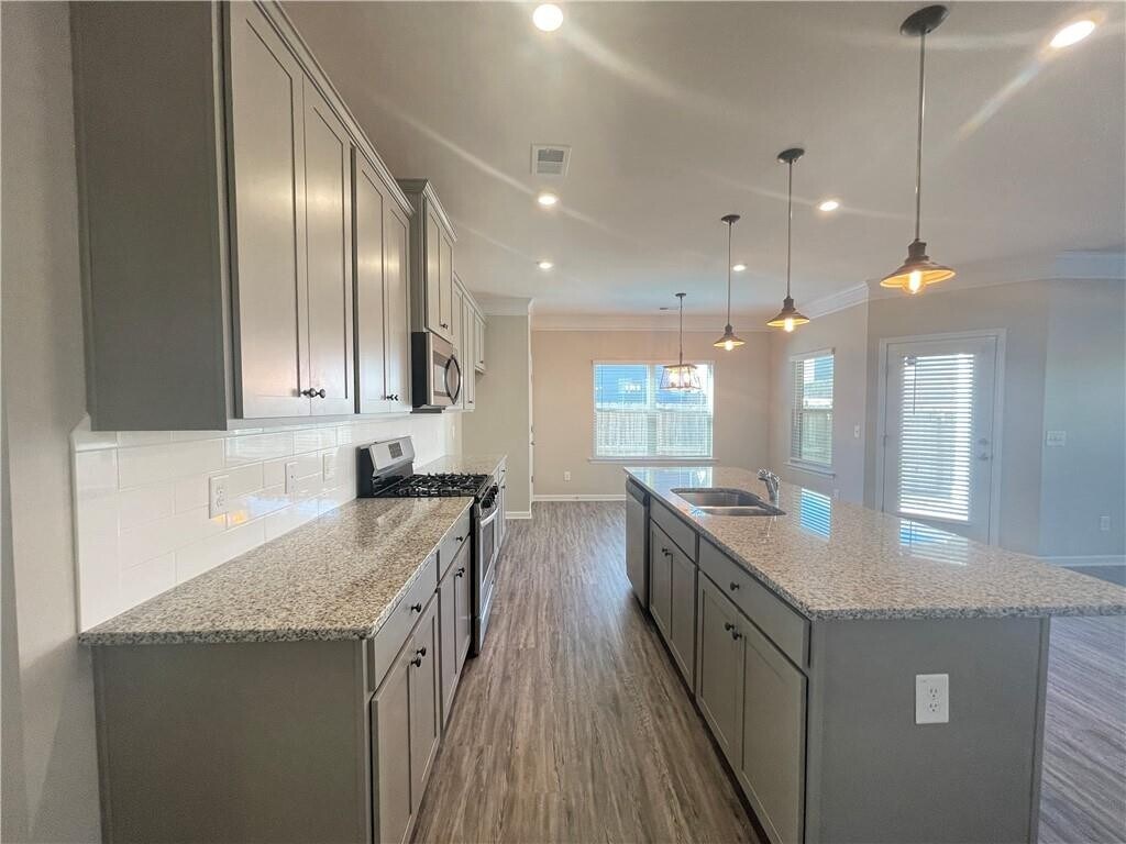Beautifully maintained 4-bedroom,2.5-bath home built in 2020. The first floor features luxury vinyl plank flooring throughout,while the second floor offers cozy carpeting. The open-concept layout includes a spacious living area and a large kitchen island with granite countertops. The kitchen is equipped with stainless steel appliances and ample cabinet space. Upstairs boasts a large master suite with a double vanity,a full secondary bath,three additional bedrooms,and a convenient laundry room. Enjoy outdoor living with a private fenced backyard and a covered patio,perfect for relaxing or entertaining. Great location that right off Highway 92,close to shopping,restaurants,and major intersections for easy access and convenience. MOVE IN READY!!