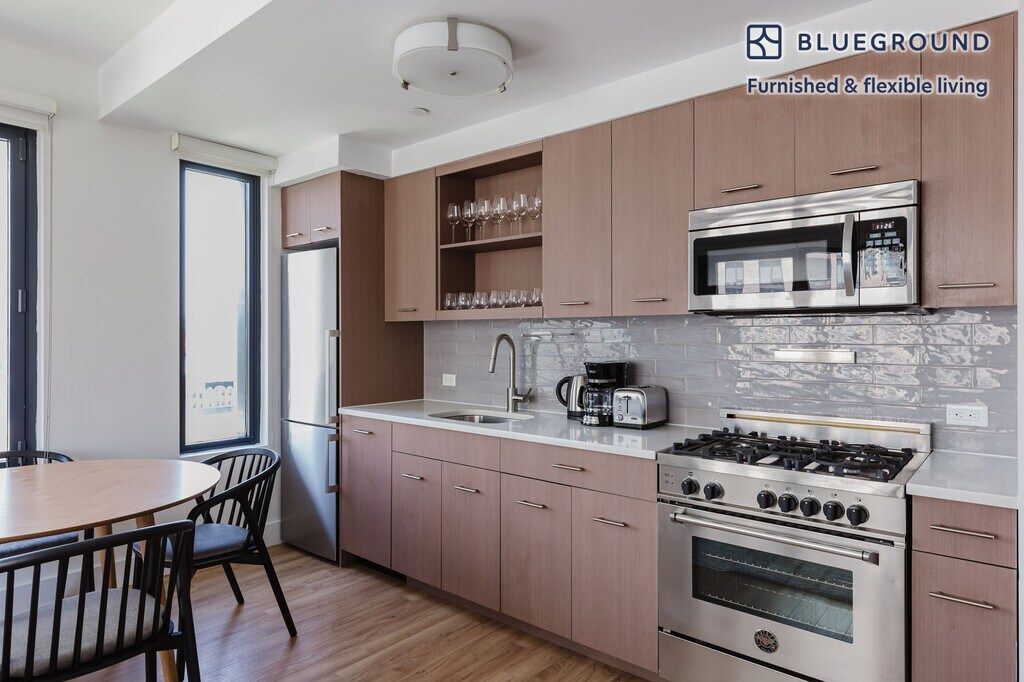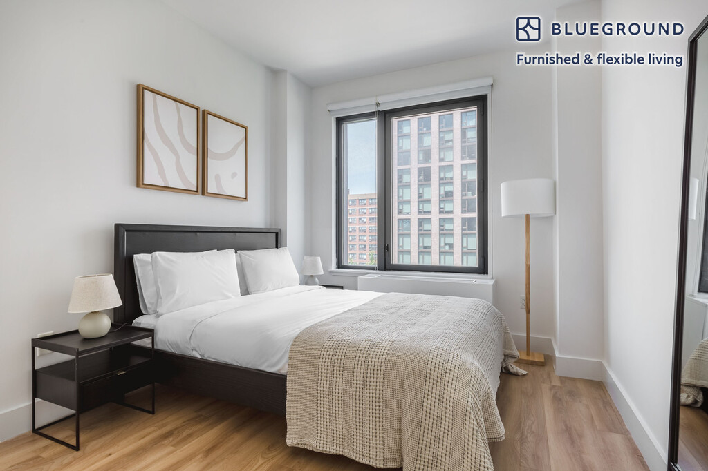 Show up and start living from day one in New York with this lovely two bedroom Blueground apartment. You’ll love coming home to this thoughtfully furnished, beautifully designed, and fully equipped Lower East Side home with stunning views over the city. (ID #NYC1495) The advertised rate of $8,360/month is the lowest available price, based on a 11 month(s) and 29 day(s) stay with a move-in date of February 1, 2026. Rates vary depending on the duration of stay, season, and other parameters. For exact pricing and additional pricing components, please visit our website and enter your desired move-in and move-out dates. The rate is applicable when billed upfront; it can be higher if billed in multiple payments. Brokers are welcome to reach out. Were you looking for an unfurnished lease? Try Blueground instead and upgrade from unfurnished to furnished living: - Furnished at rates comparable to unfurnished - No setup or furniture costs - save thousands - Move-in ready - save time, just bring your suitcase Designed with you in mind Thoughtfully designed with bespoke finishes, modern furnishings, and a fully equipped kitchen, you’ll enjoy that “I’m home” feeling with this Blueground apartment. Whether you’re lounging in your comfortable living room streaming the latest and greatest entertainment on the smart TV or premium wireless speaker, or getting some well-earned rest on the superior quality mattress with luxury linens, you’ll fall in love with everything this Lower East Side apartment has to offer. This apartment also offers in-apartment laundry. Sleeping arrangements Queen Bed, 63in/160cm Queen Bed, 63in/160cm Amenities Building amenities unique to this two bedroom apartment include an on-site: - BBQ Area - Doorman - Dryer - Elevator - Washing machine - Lounge - Library - Media room - Pets allowed - Playroom Arrival and ongoing support The entire apartment is yours to enjoy! Throughout your stay, you’ll have access to our Client Experience team through the Blueground App. You can schedule additional cleanings, submit maintenance requests, and view our neighborhood recommendations with just a few taps. We’ll share all details upon confirmation of your stay. Ideally Located This furnished property is located in the Lower East Side, also known as LES. The neighborhood never sleeps thanks to the booming bars, music venues and restaurants that it offers. Long-time residents mingle with youngsters who nest nearby, giving the area unique, eclectic character. During the day, the LES is rather quiet, providing locals with the chance to stroll around the hidden boutiques across the neighborhood. On the weekends, go for lunch at one of the area’s trendy restaurants. Pathways along the East River offer great views of the Williamsburg Bridge and are ideal for biking. Wall Street, Union Square, and Grand Central are only a 20-minute subway ride away. Other things to note Building amenities may have an extra cost. This Blueground apartment has flexible lease options, allowing you to book it for one month, a year, or more. Pets are welcome, though weight limits and breed restrictions apply and may incur fees. Brokes CYOF. We take great pride in ensuring every photo displayed is shot in our own units with our actual furnishings. That said, we regularly refresh our decor and furniture arrangement, which may differ from what’s pictured. [SI]