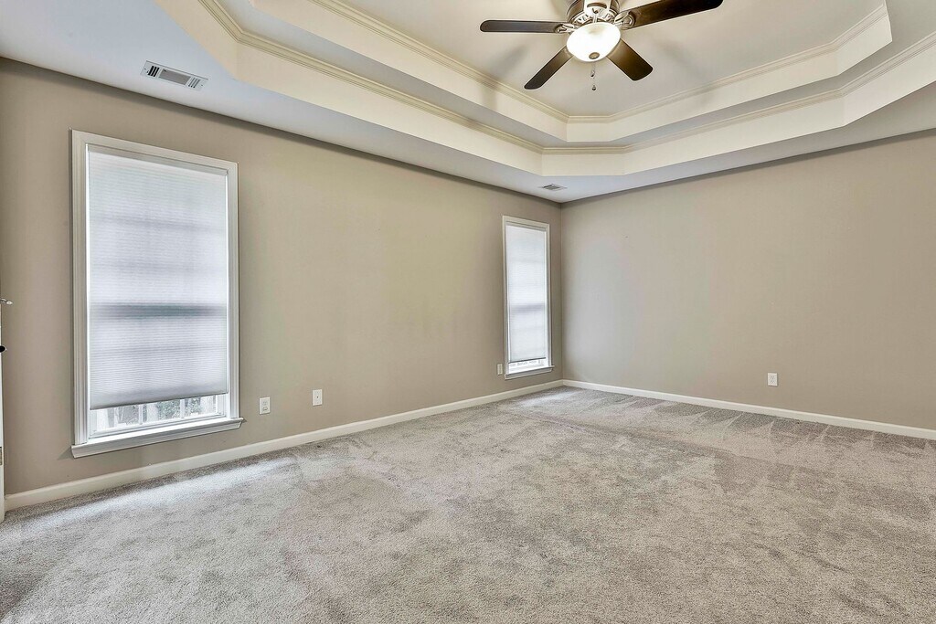 Located in Millpond Manor with access to the neighborhood pool, tennis courts, playground, and sidewalks, this home sits in the award-winning Starr’s Mill school district where you can golf cart to school and anywhere around Peachtree City. It’s the best kind of everyday living. This 4-bed, 3-full-bath, 2-half-bath home opens with a wide, inviting floor plan framed by 10–12 ft ceilings, crown molding, and hardwoods throughout the main level. A private office off the foyer offers the perfect work-from-home setup, and the den features a gas-starter brick fireplace that instantly makes the space feel like home. The kitchen checks every box: granite counters, stainless-steel appliances, electric cooktop, built-in microwave, wall oven, two-step counter bar, eat-in breakfast area, and a walk-in pantry. A full laundry room with sink sits on the main level, adding to the home’s thoughtful layout and storage. The primary suite is a true retreat with three closets, dual vanities, a soaking tub, and a separate tiled shower. Three additional bedrooms offer plenty of flexibility for family, guests, or a second office. The partially finished basement provides the perfect space for a game room or hangout space. It is loaded with extra storage space as well! Out back, an expansive deck gives you room to grill, entertain, or unwind while overlooking an open backyard. The home also includes a two-car garage with extra space for storage or a golf cart. ** Rent Requirements** 12 Month Lease Minimum Minimum 620 Credit Score Background/Credit Check Income 3x Monthly Rent Pets on case by case basis. Please call Chitwood Pearson Management & Brokerage with any questions!