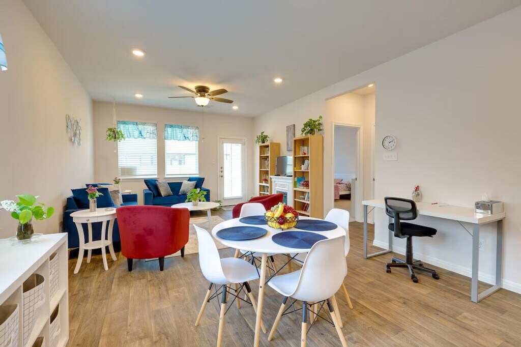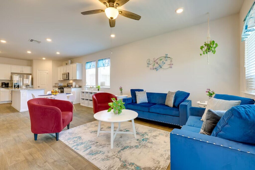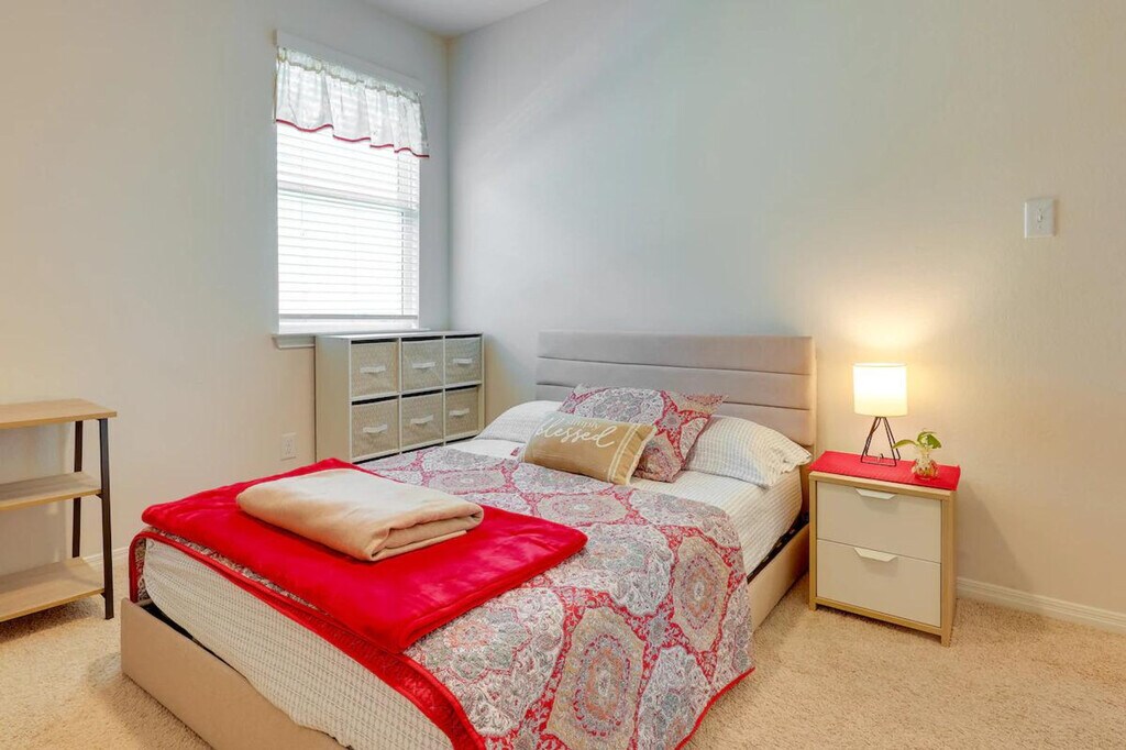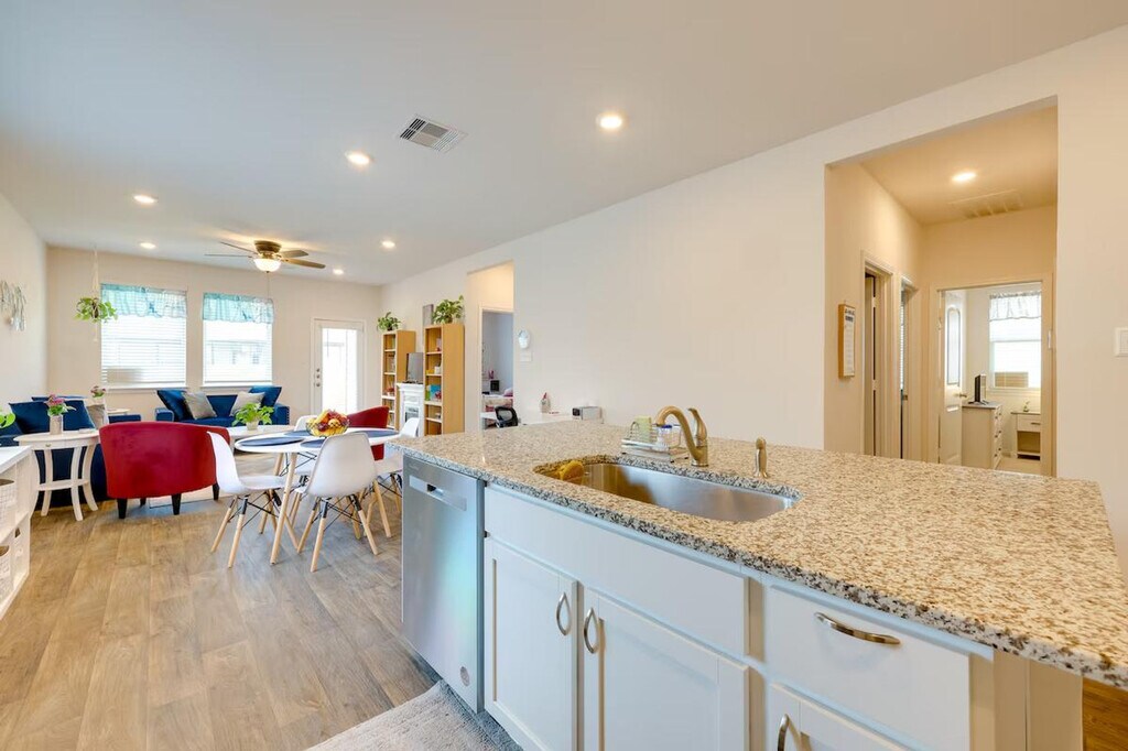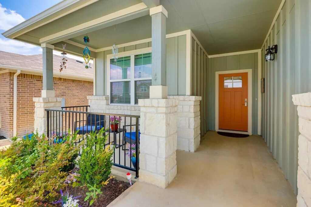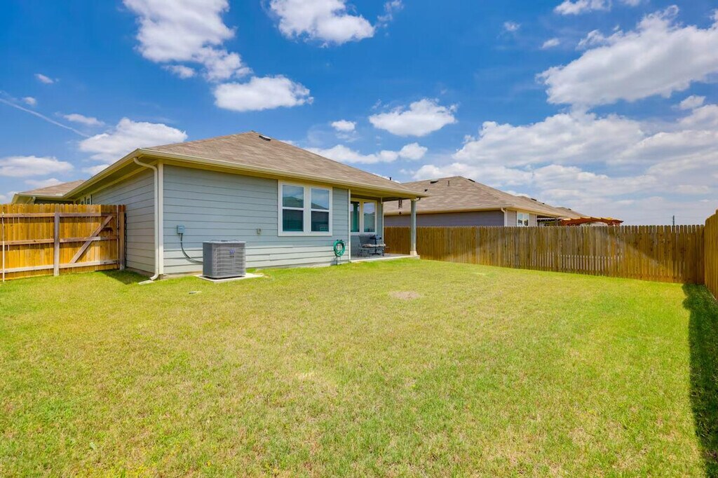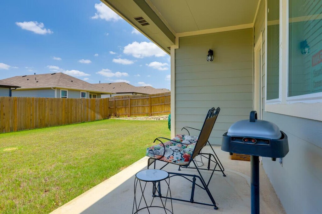 The advertised rate of $5,172/month is the lowest available price, based on a 1 month(s) stay with a move-in date of April 14, 2026. Rates vary depending on the duration of stay, season, and other parameters. For exact pricing and additional pricing components, please visit our website and enter your desired move-in and move-out dates. The rate is applicable when billed upfront; it can be higher if billed in multiple payments. Feel at home in this 4-bedroom, 2-bath home in Kyle, TX, the perfect base for business travelers visiting Austin. This single-story home requires one step to enter. This 1,535 sq ft home features a kitchen equipped with a stove/oven, refrigerator, microwave, dishwasher, dual drip/pod coffee maker, toaster oven, blender, and rice cooker. Cooking basics, dishware, flatware, trash bags, and paper towels are provided. Enjoy the smart TV, books, and electric fireplace in the indoor living area. A washer and dryer with laundry detergent, an iron and ironing board, linens and towels, complimentary toiletries, and a hair dryer are also available. Enjoy the convenience of parking for up to 4 vehicles in the driveway and an electric grill for outdoor cooking. Located 23 miles from downtown Austin, this home offers easy access to Lake Kyle Park and other downtown attractions. Relax and unwind under the Texas sky in the fenced yard, complete with a patio and furnished porch. Photo ID may be required upon check-in. No smoking, pets, events, parties, or large gatherings are allowed. This property features 2 exterior security cameras: 1 camera is by the front door facing the front entrance, and 1 camera is by the back door facing the yard. The cameras are outward facing and do not look into interior spaces. The cameras record video and sound when activated by motion. Includes 4 dedicated workspaces and complimentary Wi-Fi. [SI]