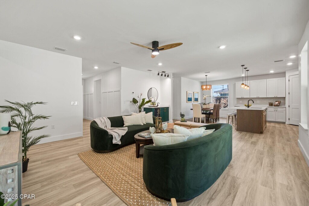 NEW CONSTRUCTION. This newly built 4 bedroom home combines modern design with durable construction that include hurricane impact doors and windows. You'll find spacious rooms with soaring 9-foot ceilings, giving the home an open, airy feel. The floor plan includes a large, open-concept living area perfect for entertaining. The master suite is a serene retreat (added insulation between family room and master bedroom wall for privacy and noise reduction) with an ensuite bathroom. The home sits on a large fenced in lot backed up to a wooded area that connects to the conservation park. This allows for privacy and a peaceful, natural backdrop to enjoy your built in fire pit. Pets are allowed with pet deposit. Lease minimum is 6 months. Lawncare is included.This one-of-a-kind neighborhood even has a 3 acre park with a basketball court, covered picnic area, and playground plus lots of open space for playing sports with your kids or dogs.