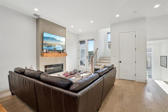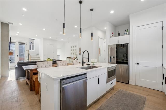 Modern Elegance Meets Urban Convenience in Prime Dallas Location! Discover refined urban living in this stunning 2-bedroom, 2.5-bath modern condo boasting 1,689 sq. ft. of exceptional design and craftsmanship. The first-floor office with a closet offers flexibility as a third bedroom or private workspace. Every detail has been thoughtfully curated, featuring white oak plank flooring, LED recessed lighting throughout, and a striking Roman plaster fireplace that anchors the main living area. The gourmet kitchen is a true showpiece, showcasing sleek quartz countertops, stainless steel appliances, a walk-in pantry, and contemporary cabinetry. Refrigerator, washer, and dryer stay with the home. The open-concept living and dining areas flow effortlessly to a private balcony, ideal for morning coffee or evening entertaining. Retreat to the luxurious primary suite, complete with its own balcony, a spa-inspired wet area featuring a soaking tub and glass-enclosed shower, and a spacious walk-in closet. The secondary bedroom also includes an ensuite bath with a frameless glass shower enclosure, offering comfort and privacy for guests. Additional highlights include a tankless water heater, energy-efficient HVAC system, and modern finishes throughout. Situated just minutes from Lakewood, Lower Greenville, Deep Ellum, and with quick access to Downtown Dallas via I-30, this residence delivers the perfect blend of style, sophistication, and convenience.
