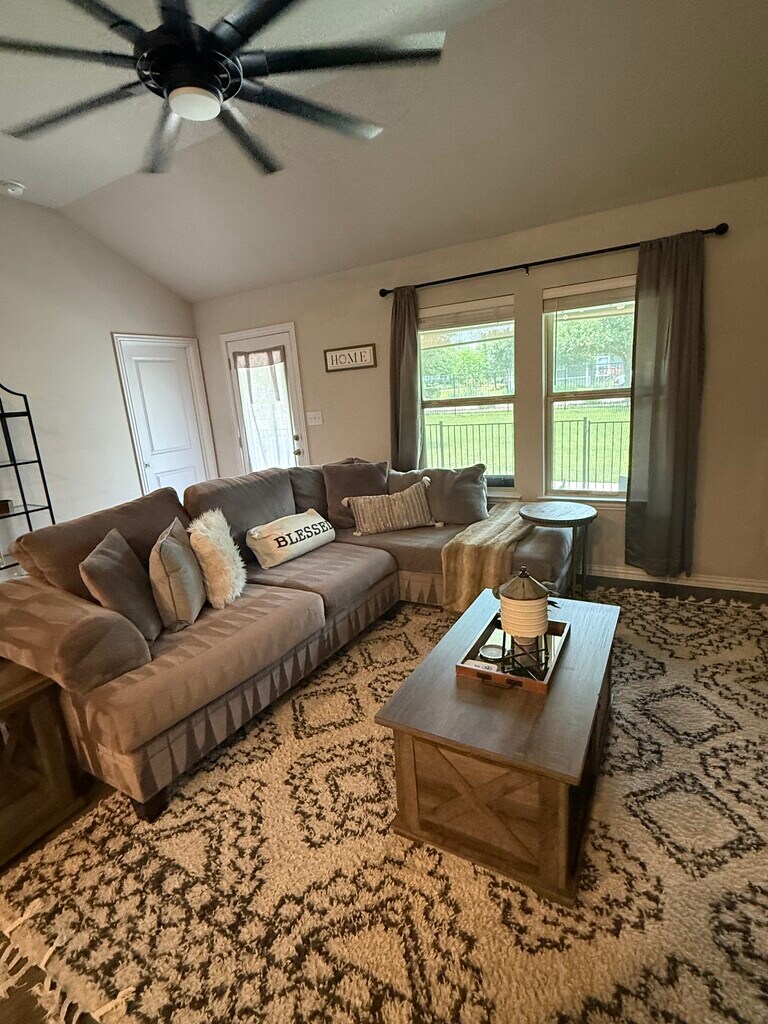 ** Ideal candidate move in date would be 12/1/2025 through 1/31/2026** One Year Lease required from date of move in Welcome to this beautiful 3-bedroom, 2-bathroom home located in the desirable Peninsula at Plum Creek community in Kyle, TX. With 1710 sq. ft. of living space, this home offers a comfortable and modern layout perfect for families or individuals seeking a peaceful retreat while being close to local amenities. The home comes with garage space for one vehicle and one spot on the driveway. The cost listed also includes furniture which includes a dinning room tables with bench and 4 chairs, island bar stools, refrigerator, washer/dryer, living room television with TV stand, living room table, sofa and love seat, two beds with frames (one full and one queen). Ideally looking for a tenant that would prefer the furnished option but flexible. Rent does not include utilities. General utilities without wifi/cable run about 200-300 a month depending on the weather. **Pictures do not include master bathroom, master bedroom or or 2nd bedroom but I am able to get these for you if inquiring** Key Features: Spacious Open Floor Plan: The inviting open-concept design provides an airy, welcoming atmosphere throughout the home, with plenty of room for relaxation and entertaining. Modern Kitchen: The kitchen boasts elegant granite counter tops, stainless steel appliances, a spacious island, and ample cabinetry, making it ideal for cooking and meal prep. Master Suite: The large master bedroom features a private en-suite bathroom with a walk-in closet for extra storage. Additional Bedrooms: Two additional well-sized bedrooms offer versatility, whether for family, guests, or a home office setup. There is another bonus room as well to use as a gym space or home office. Private Backyard: Enjoy a spacious backyard with a patio, perfect for outdoor dining, gardening, or relaxing in a private setting. Comes with a sun shader for afternoons and evenings on the patio when the sun sets Community Amenities: Swimming Pools: Take a dip in one of the two community swimming pools during the hot summer months. Hiking Trails: Enjoy outdoor recreation with access to scenic trails in the area, ideal for walking, jogging, or simply taking in the natural beauty. Family-Friendly: The neighborhood is known for its peaceful, family-oriented environment, making it a great place to call home. Location: Convenient Access to I-35: Enjoy quick and easy access to I-35, making commuting to nearby cities like Austin and San Marcos a breeze. Proximity to Shopping and Dining: Located just minutes from a variety of shopping options, including HEB, as well as local dining spots to suit all tastes. Highly Rated Schools: The property is within walking distance of top-rated schools in the area, making it a prime location for families with children. This home is ideal for anyone looking to enjoy the balance of suburban tranquility with easy access to city amenities. Schedule a tour today and make this beautiful home your next place to live!
