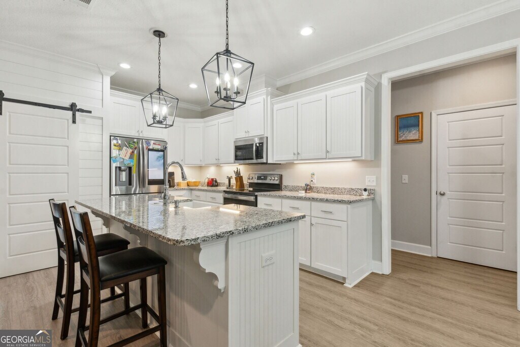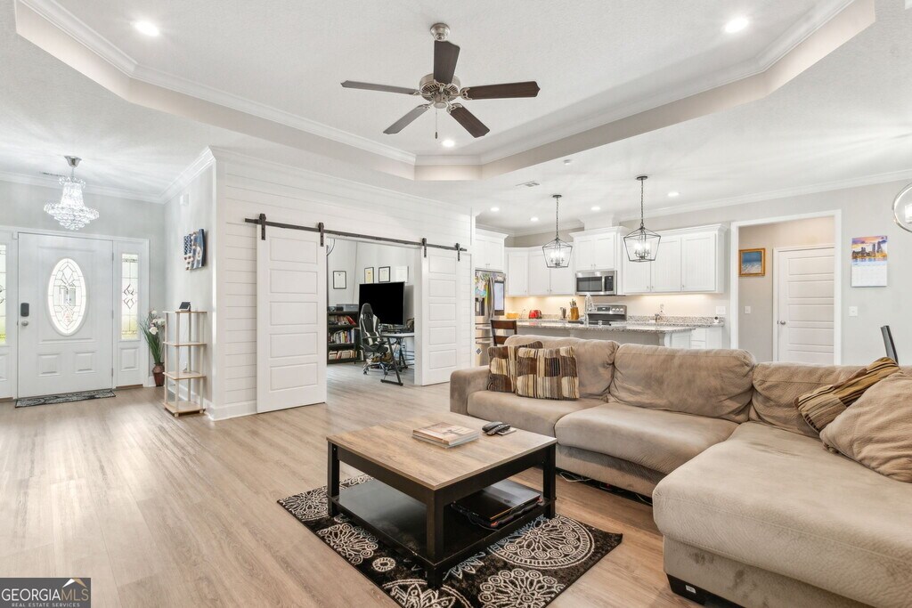 Charming 3-Bedroom + Flex Space on a Corner Lot in Lake Juniper (4 Yrs New!) Built by reputable Josselyn Homes Inc., this 3 bed / 2 bath home features a split-bedroom layout and a versatile flex space-perfect for a home office, playroom, or formal dining. Enjoy EVP flooring in the main living areas, cozy carpet in the bedrooms, and inviting custom shiplap accents with barn doors for extra character. Relax on the screened, covered back porch, ideal for morning coffee or evening unwinds. Highlights: Side-load 2-car garage with EV charger Corner lot with gutters Screened, covered back porch Only 4 years old with thoughtful upgrades Location perks: Close to local eateries and shopping, ~8 minutes to Kings Bay Naval Submarine Base, and ~6 minutes to I-95-easy for commuting and daily convenience.