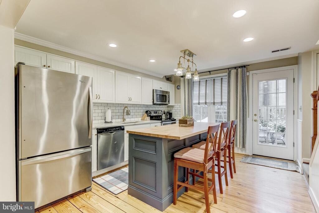 Be a part of the beautiful Otterbein neighborhood in South Baltimore! Walk along the tree lined street to enter into this beautifully updated rowhome which features 2-3 bedrooms, 2 bathrooms, and great outdoor space. The charming rowhome has an open floor plan with original hardwood floors throughout. The main floor has a living room with a wood burning fireplace which leads to a completely updated kitchen featuring a large kitchen island and stainless steel appliances. The oversized kitchen windows open to a private courtyard perfect for entertaining. Second floor has a primary suite with a walk-in closet and updated bathroom. Bright and versatile third floor space can be used as a bedroom, office, den, and/or entertainment space. Finished basement with full bathroom could be a 3rd bedroom, home office, or living space. Home is surrounded by a dozen parks and is a short walk to the MARC train, Inner Harbor, stadiums, Federal Hill, UMD Baltimore campuses and hospital, and shops/restaurants. Available April 11th.