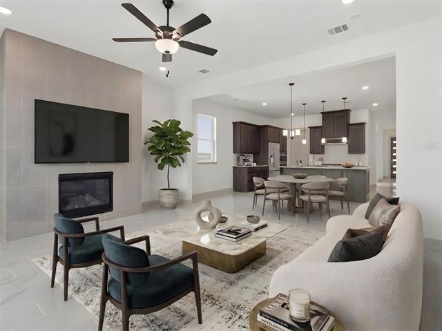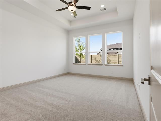 This brand-new home offers a clean, modern layout that feels easy from the moment you walk in—open, inviting, and designed for real life. The kitchen sits at the center with a large island, great storage, and a seamless flow into the living and dining areas, while the sliding glass door opens fully to the covered patio for a true indoor-outdoor feel. The primary suite is privately tucked away with tray ceilings, dual walk-in closets, and a spacious ensuite bathroom with double vanities and a beautifully designed shower. The laundry room connects directly to the primary closet for added daily convenience. Secondary bedrooms offer ample storage and access to full baths, and a dedicated home office provides a flexible work-from-home space. Located in the award-winning Harvest community, residents enjoy resort-style pools, fitness centers, parks and playgrounds, walking and biking trails, community gardens, a dog park, an on-site coffee shop, and regular neighborhood events—all within highly sought-after Argyle ISD!