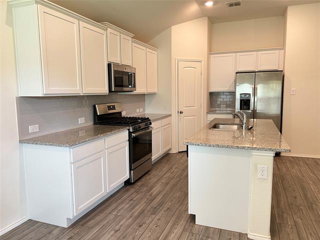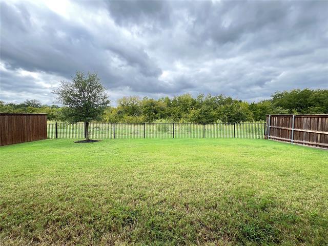 Beautiful 4 Bedroom, 2 Bath Home with greenbelt views. This spacious open floor plan home offers 4 bedrooms and 2 bathrooms, designed with comfort and functionality in mind. The kitchen features granite countertops, a large island, pantry, and gas range—plus the refrigerator is included. Washer and dryer also convey, making this home move-in ready. The primary suite is situated with an ensuite bath featuring dual sinks, a walk-in closet, garden tub, and separate shower. Guest bedrooms are split from the primary, providing extra privacy. Enjoy the outdoors with no backyard neighbors, serene greenbelt views, and a covered patio perfect for relaxing or entertaining. Community amenities include a refreshing pool, playground and jogging - walking trails. Easy access to 380 and Lewisville Lake. Pets welcome upon owner approval. Owner maintains lawn. 12 month lease term only. Breakfast table available for purchase from owner ($750)