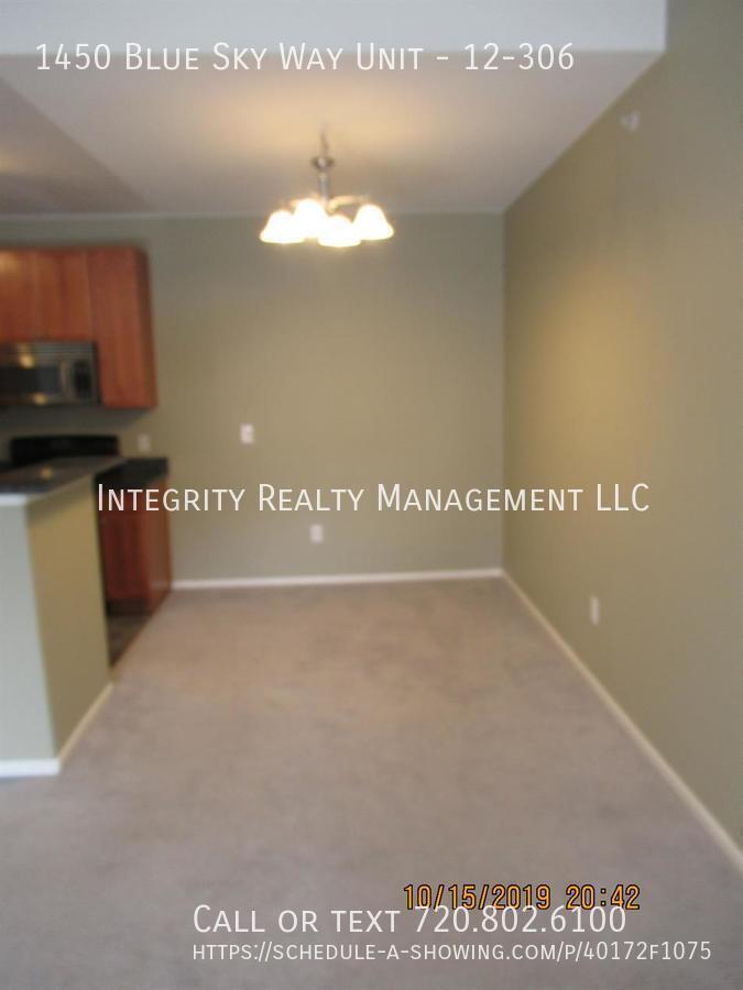 Bright 2-Bedroom, 2-Bath Condo in Erie | $1,950/month Welcome to 1450 Blue Sky Way Unit 12-306! This spacious 2-bedroom, 2-bathroom condo offers 1,156 sq ft of comfortable living in a quiet, well-maintained community. Perfectly located near local parks, trails, shopping, and easy highway access, this home blends convenience with modern living. Step inside to a bright open floor plan with a large living area and cozy fireplace. The kitchen features ample cabinet space and modern appliances, while the bedrooms are generously sized with full baths for privacy and convenience. Enjoy the Colorado sunshine from your private balcony. Community amenities include a swimming pool, fitness center, and beautifully landscaped common areas. Property Highlights Rent: $1,950/month 2 Bedrooms | 2 Bathrooms 1,156 sq ft of living space Bright open floor plan with natural light Spacious kitchen with modern appliances Fireplace in living room Private balcony In-unit laundry Community pool, fitness center, and clubhouse Lease Details Security Deposit: One month’s rent Lease Term: 12 months Pets: Considered with approval Additional Fees: $150 administration fee, $45 utility transfer fee Available: Move-in ready Applicant has the right to provide us with a Portable Tenant Screening Report (PTSR) that is not more than 30 days old, as defined in Section 38-12-902(2.5), Colorado Revised Statutes. The portable tenant screening report must be provided to the landlord directly by the consumer reporting agency and can be no more than 30 days old. If Applicant provides a PTSR, we are prohibited from: a) Charging Applicant a rental application fee; or b) Charging Applicant a fee for access to or use of the PTSR. 1 Car Garage 16 X25 Furance Filter Ac Detached Dog Only Gas Fireplace Master Bathroom Pool Vaulted Ceilings Washer And Dryer Included Washer And Dryer Hook Ups