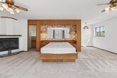 Owned solar. Lovely porch in front of house to relax in the morning sun. This charming home boasts a Gas range in kitchen,newer SS appliances,pantry with pull out shelving,window overlooks side yard. Formal dining room opens to the huge family room with fireplace and sliding glass door to the covered patio. Spacious 3 bedroom,3 bath with two primary suites. The large primary has a fireplace,walk in closet and sitting area with another closet. Large bathroom with dual sinks and stall tiled shower with seperate water closet. Second primary suite has hardwood floors and attached tiled bathroom with stall shower,vessel sink and modern vanity. Third bedroom is smaller approx 10x10 with hardwood floors and built in closet. Ceiling fans are in all bedrooms and the family room. The front yard is drought tolerant and there is small patch of grass in the backyard including fruit trees and rosemary. Side yard large enough for RV/Boat parking. The storage shed is not included. Short distance to schools and shopping. Fresh Interior Paint. All appliances included.