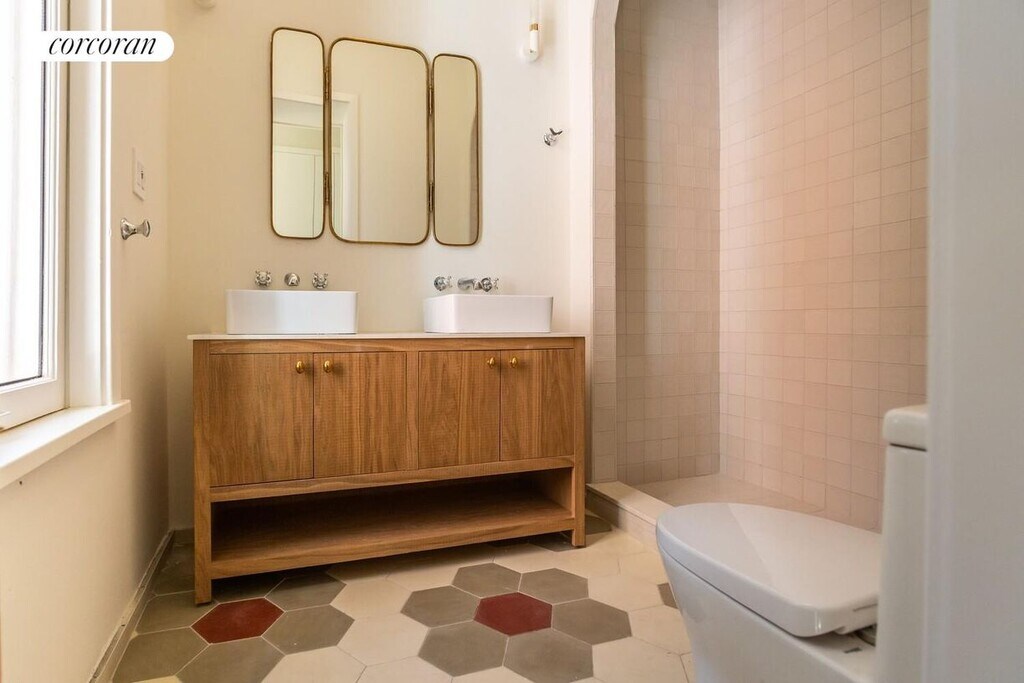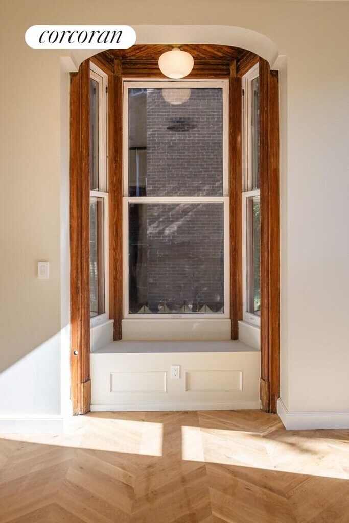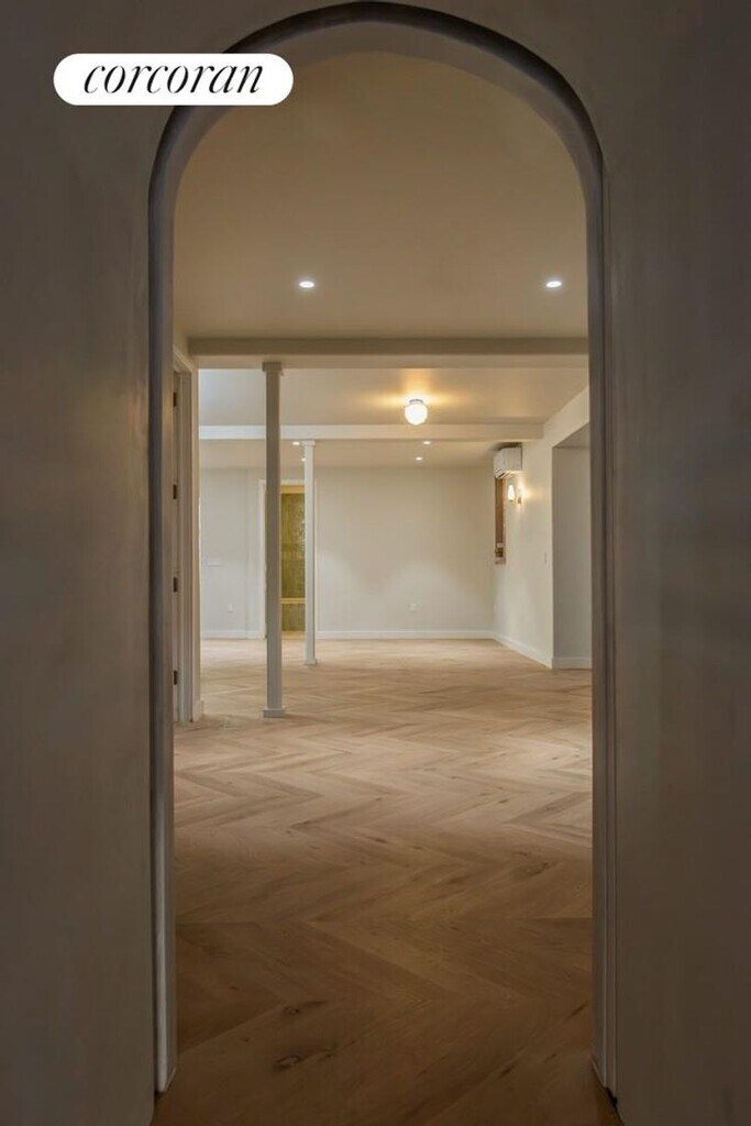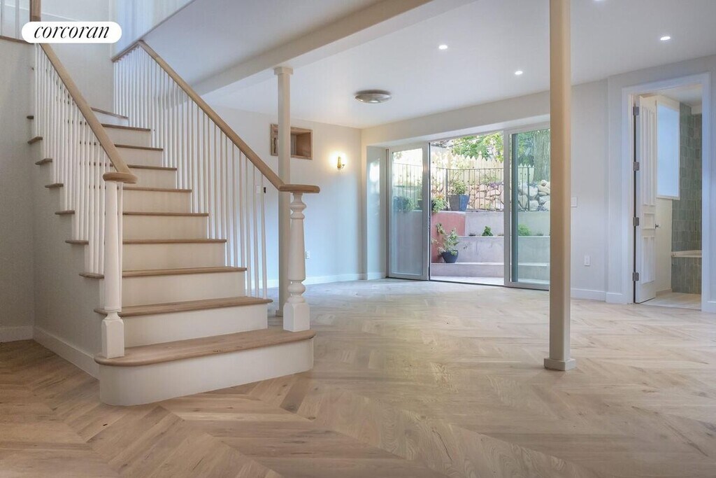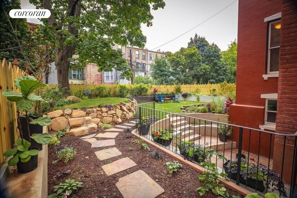 Welcome to 1450 Pacific Street, a rare iconic Landmark in the heart of Crown Heights Historic District. This freestanding, ornate, Victorian is a fairy-tale home. The recent spectacular restoration made it a star of OPEN HOUSE NY 2024 as well as a winner of the prestigious NYC Landmarks Award in 2025. Unit #1 is a dream home and designer's showcase - a townhouse-sized duplex with 4 bedrooms, 2.5 bathrooms, an enormous rear yard and private front patio. Every inch of its thoughtful and supremely tasteful design stands out.The grand entrance starts at the ornamental, wraparound front porch that is the pride of the neighborhood. Enter a lobby with colorful handmade Moroccan tile and restored original wood moldings and find yourself in a spectacular parlor space with high ceilings surrounded by enormous soaring windows decorated with the original molding and an ornate wood arch with custom cabinetry. A gas fireplace and original wood mantel add warmth and elegance. The white oak hardwood floor has a unique chevron pattern. Off of the parlor is a grand sized Victorian inspired kitchen. It offers fully custom cabinets with European hardware and top-of-the-line appliances, including: built-in 36" Fisher & Paykel Fridge panel, 36" six burner range by Bertazzoni, Bosch D/W. The Island is topped by stunning marble and features an imported brass bridge kitchen faucet by Perrin & Rowe. Directly off of the kitchen, step out onto your private, unique, oversized front patio for grill time. Continue towards the back of the house to the first bedroom and a radiantly red half bath with a throwback reproduction pull-chain toilet imported from England. Next you will enter the master suite with its own restored bay window and built-in cushioned bench. The room is south facing and filled with sun through its two floor to ceiling windows, giving a spectacular view of the backyard. Adjacent is another bedroom that can be used as a nursery, dressing room or an office. The master bath features an arched shower and designer floor tile pattern. Plumbing hardware is by Victorion imported from England. To reach the lower lever you will use an elegant, open, white oak staircase, which visually connects the two levels. Here you will enjoy a vast space that can be furnished in various ways to accommodate a dream family living life. It is from here that you can walk straight into your outdoor terraced stone patio which leads you further into a rare, beautiful 50 ft wide landscaped yard. The lower level also includes another beautifully designed bathroom with gorgeous handmade tile, another bedroom and oversized LG washer dryer. The unit also features central air, smart dimmers, and radiant heating in all of the bathrooms. Located near Brower Park and the Brooklyn Children's Museum, with easy access to the 3 and A/C trains. It is truly the most beautiful space currently on the market in the Crown Heights area. Come and fall in love with this ultra-special home. Available Feb, 1st 2026. Disclaimer: A non-refundable rental application and credit check fee of $20 is required per applicant and/or guarantor. Additional move-in costs include the first month's rent and a security deposit equal to one month's rent.