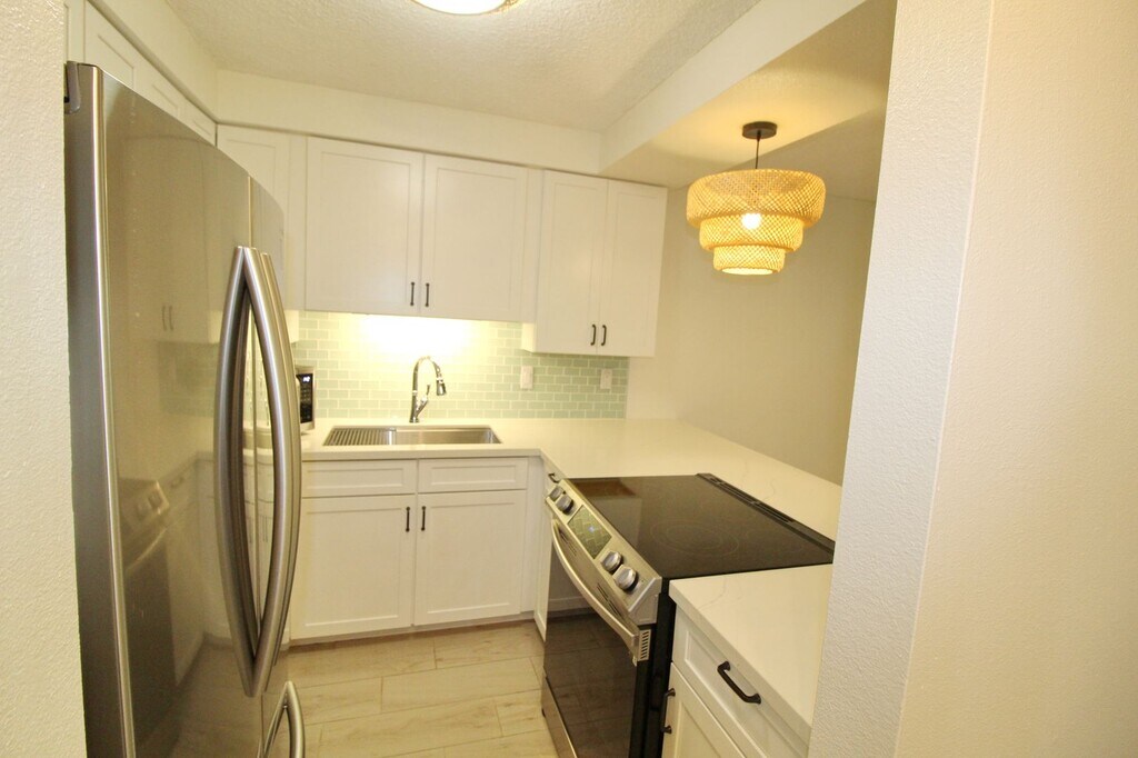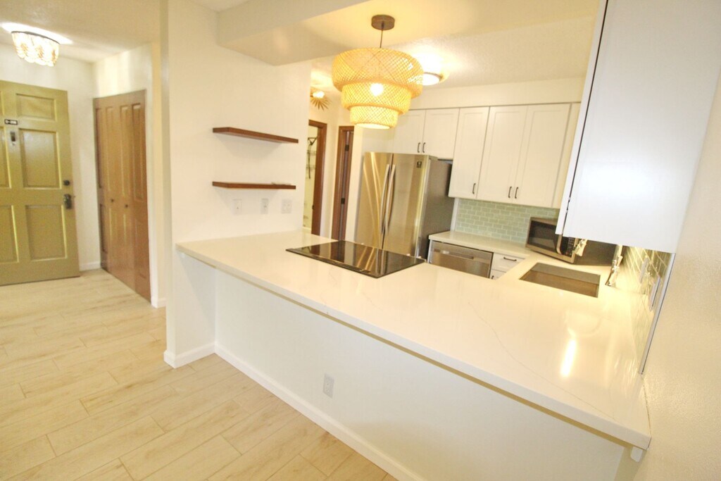 This second floor 1 bedroom 1 bath unit looks out over the beautifully landscaped court yard between the C and D buildings. The unit has been tastefully updated. Updates include new kitchen cabinets, new stainless-steel appliances, new kitchen countertops and sink, new bathroom vanity, new washer/dryer and new lighting and flooring throughout. There is a split AC system in the unit. Large walk in closet in the bedroom and large lanai with Haleakala views and storage closet. Two assigned parking spots. Maui Gardens is located on the ocean side of South Kihei Road. It is conveniently located 1/2 block from the beach and a short walking distance to restaurants, shopping, the post office and medical services. Complex amenities include beautifully landscaped courtyards, tennis/pickle ball court, pool, spa, BBQ area, lending library and car wash. There is a Resident Manager in the complex. 12 month minimum lease. Renters insurance is required. No Pets. No smoking.