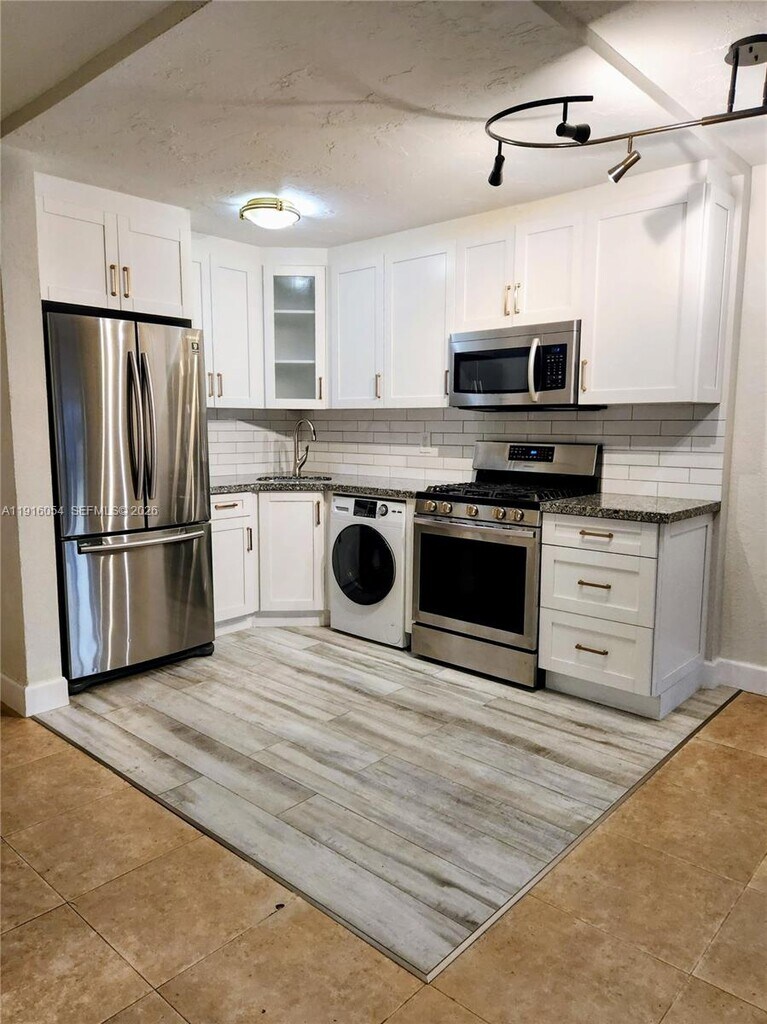 Beautifully updated 1-bedroom, 1-bath condo on the first floor, private balcony, one assigned parking, and all-in-one washer/dryer inside the unit. Gated community. Private access to the Publix Supermarket from the Parking. This light-filled unit features sleek porcelain floors, impact windows and doors, and a large walk-in closet. Relax with a sparkling pool on lush landscaped grounds & clubhouse. Also, has a laundry facility steps from the unit. Gas & water included in rent. Call today, don't delay! MLS # A11916054