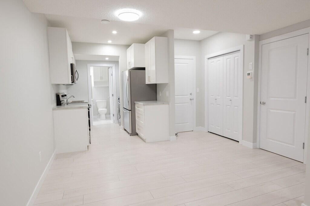 This Energy Efficient newly built basement suite and is located in Cavanagh, a community with an abundance of nearby amenities, connecting to Edmonton with unprecedented access to major roadways including Calgary Trail, Gateway Blvd, Anthony Henday and Ellerslie Road! Enjoy nature in Blackmud Creek Ravine, a variety of grocery stores, restaurants, health and wellness centers, schools and so much more! Cavanagh is your new home in Southwest Edmonton! PROPERTY HIGHLIGHTS: • 585 Sq. Ft. • 1 Bedroom • 1 Bathroom • In-suite Laundry • Premium Fixtures & Finishes throughout • Luxury Vinyl Flooring • Laminate Countertops • Window Coverings Utilities are an additional $175 per month based on single occupancy. NOTE: This Unit is basement suite only. There is a separate residence above this unit. Street Parking only. Amenities Dishwasher, Dryer, Microwave, Pet friendly, Refrigerator, Stove and oven, Washer, Window coverings
