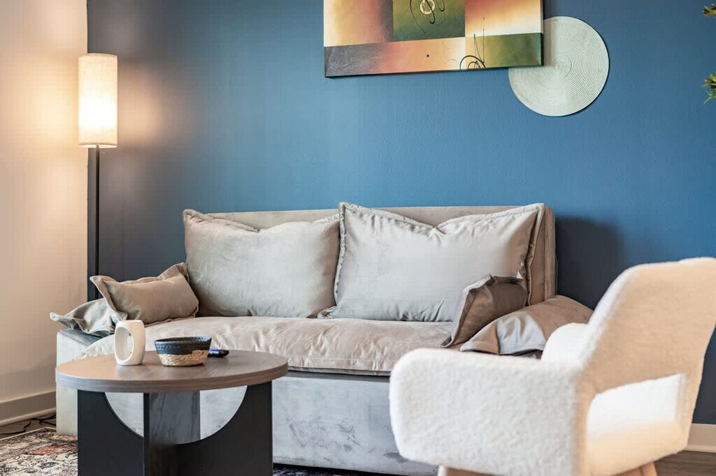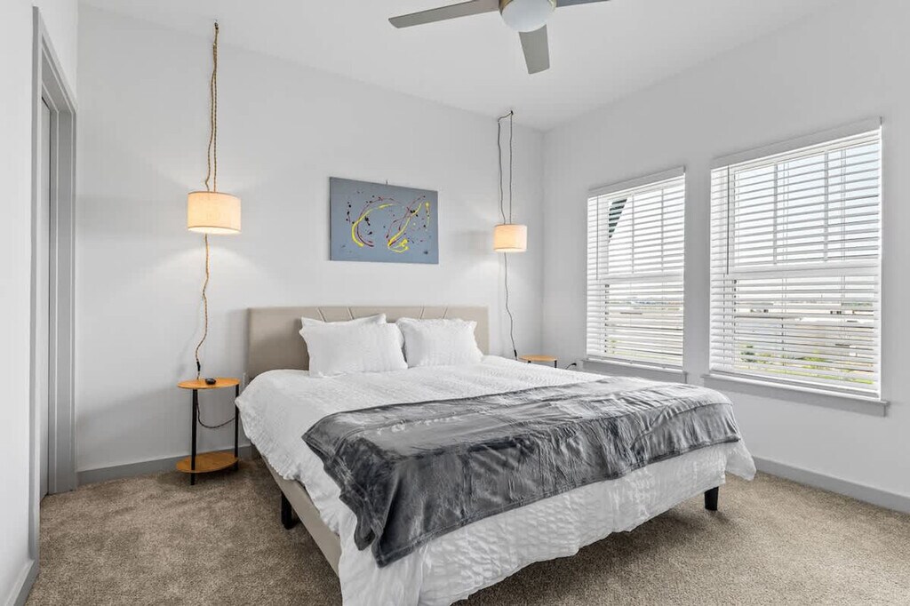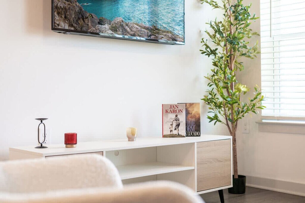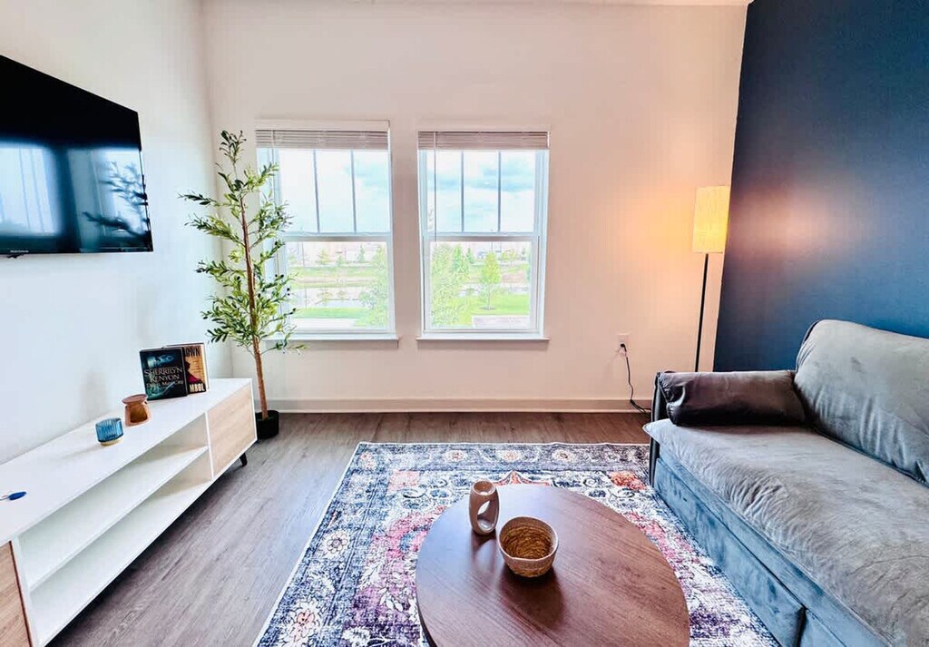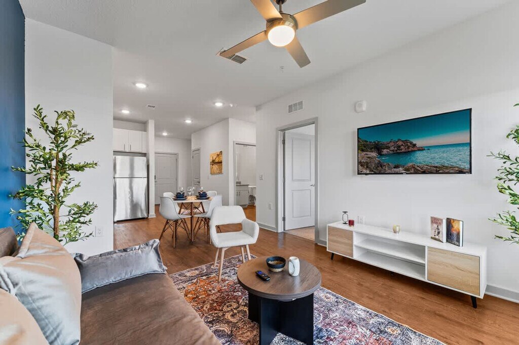 Welcome to your magical gateway, just 10 minutes from Orlando's magical parks! Perfectly located for Disney and Universal, this apartment offers a peaceful retreat with all the comforts of home. Whether you’re here to explore the magic, unwind, or even stay for long-term, you’ll love every moment of this cozy space. The property sleeps 4 people. This apartment values you as a guest, making your stay simple and hassle-free. The living room features a queen-size sofa bed for additional guests, a 50” smart TV for entertainment, and a cozy atmosphere to unwind. The bedroom boasts a plush king-size bed with linens provided, a 43” smart TV, a ceiling fan, and a walk-in closet with ample storage. The bathroom offers a relaxing bathtub and shower with complimentary toiletries. The fully equipped kitchen includes a stove, microwave, refrigerator, coffee maker, dishwasher, and a full set of cookware and utensils. A dining table with 4 chairs is also provided. For your convenience, there is an in-unit washer and dryer. Complimentary parking is available for up to 3 cars. An EV charger is available for electric vehicles, with a fee applied when used. A Pack'n Play crib with a sheet and blanket is provided. Luggage drop-off is available after 12:30 PM with prior notification. Nearby attractions include Disney Parks, just 10 minutes away, and Universal Studios, about 20 minutes away. The local area offers vibrant shops, restaurants, bars, and recreational spots, many within walking distance and less than 5 minutes away. Pets are welcome, but some breed restrictions apply. This is a smoke-free community. Standard check-in time is at 4 PM, but early check-ins can be arranged when possible. You can hear Magic Kingdom fireworks at night from the apartment.