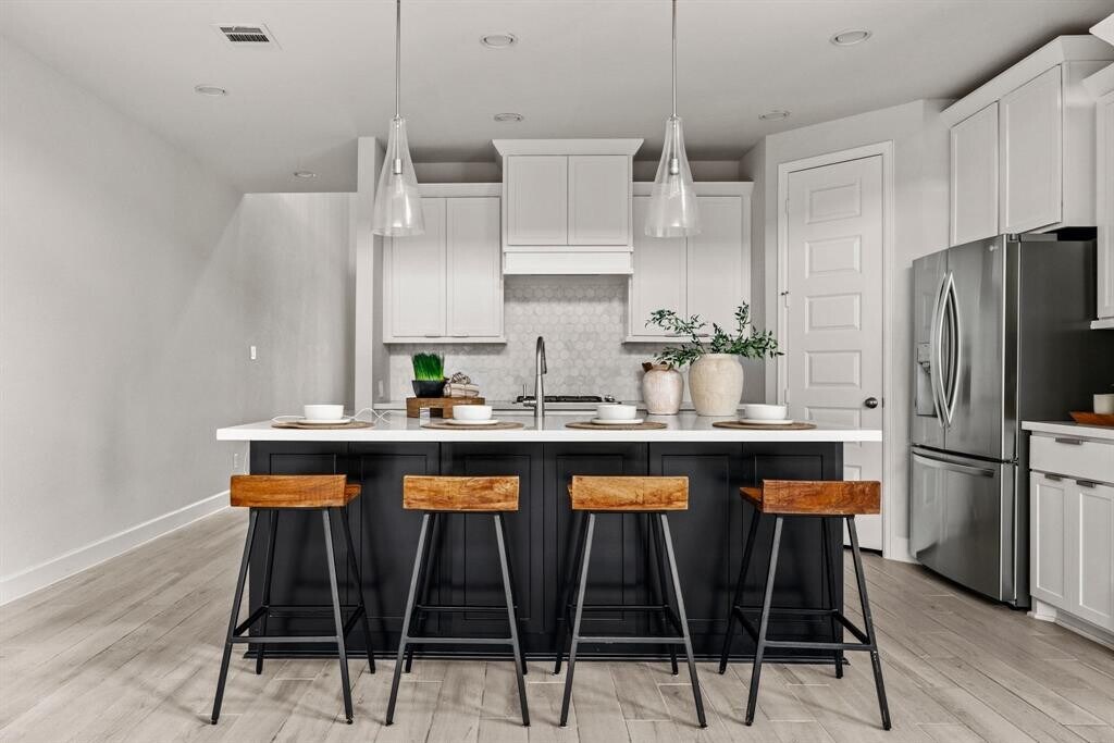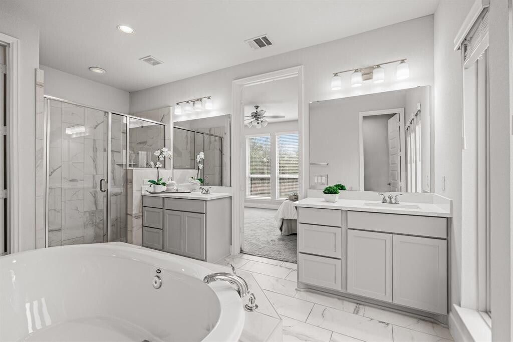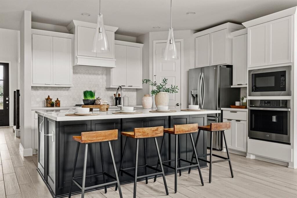 Exquisite executive residence located in the prestigious Shadowglen golf community. This sophisticated modern home features 4 bedrooms and 4.5 bathrooms, elegantly situated on a spacious 0.22-acre lot within a tranquil cul-de-sac, surrounded by lush greenery. Luxurious finishes adorn every corner, ensuring the epitome of refined living. The main level offers a master bedroom suite and a guest ensuite, providing both comfort and privacy. Designed for effortless entertaining and everyday living, the home boasts a wealth of amenities, including a study, two dining areas complemented by a Butler's pantry, two living areas, and a dedicated media room. The heart of the home lies in the expansive open-concept kitchen, featuring an extended island and seamlessly flowing into the breakfast area and living room, where oversized windows frame picturesque views of the surrounding greenbelt. Step outside to discover a serene outdoor space, ideal for hosting gatherings and creating cherished memories. With a three-car split garage providing ample storage, this residence perfectly balances functionality with luxury. Experience the ultimate blend of family living and entertainment in this remarkable home, designed to fulfill every desire and exceed all expectations.