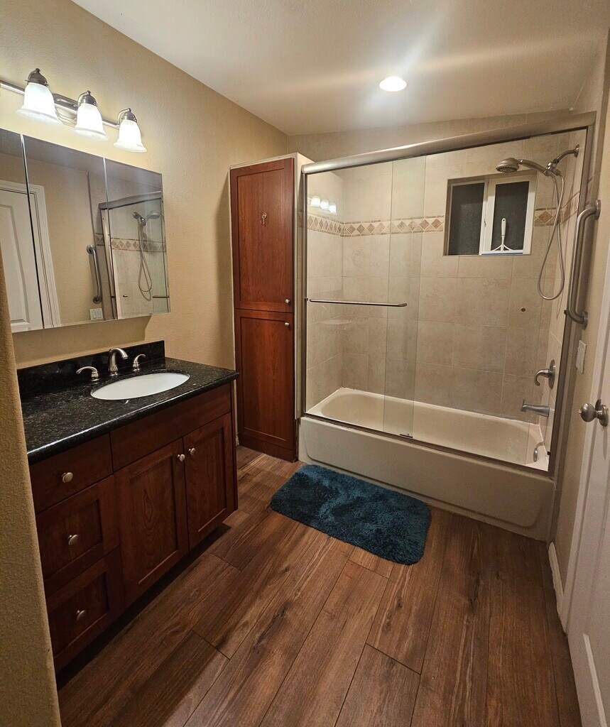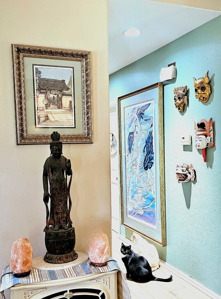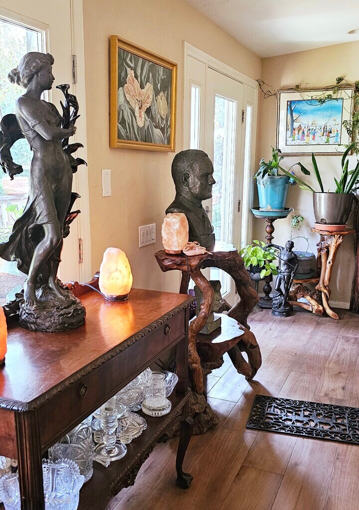Please note this is a SUITE for rent, located at one end of a long house, in a house-share situation. There is no private entrance to the Suite, but the house is large. 2 other healthy adult ladies (in mid 50s to late 60s) live at the opposite end of the house. Located on 5 1/2 acres of land called Serenity Oaks with rapid access to HWY 8 and local restaurants, grocery stores and shops. -*-*-*-*-*-*-*-*-*-*-*-*-*-*-*-*-*-*-*-*-*-*-*-*-*-*-*-*-*-*-*-*-*-*-*-*-*-*-*-*-*-*-*-*-*- Available 2/02/26 Mobile Seniors welcome. Public transportation (bus) is a considerable hike from the property, so a car or bicycle is a necessity INCLUDED: Rent includes free off road parking (see more detaiks below) and access to a laundry room (open 8 am to 9 pm) with high capacity, stacked washer and dryer (Please, No washing loads for non-residents). UTILITIES: $75 fee includes all utilities except cell service. Also included are high-speed WiFi internet with Mesh extenders, and a TV service: Dish TV at this time, with over 300 channels, (renter to provide TV). -*-*-*-*-*-*-*-*-*-*-*-*-*-*-*-*-*-*-*-*-*-*-*-*-*-*-*-*-*-*-*-*-*-*-*-*-*-*-*-*-*-*-*-*-*-*-*- Text or Calls preferred Afternoons or Evenings. Mornings are dedicated to animal care and gardens! Sorry, No Section8 -*-*-*-*-*-*-*-*-*-*-*-*-*-*-*-*-*-*-*-*-*-*-*-*-*-*-*-*-*-*-*-*-*-*-*-*-*-*-*-*-*-*-*-*-*-*-*- SUITE BATHROOM: Your airy private suite offers a large private full bathroom with hardwood cabinetry, granite countertop, and large 3 door mirrored medicine cabinet, a tall linen cabinet, and designer tile. SUITE KITCHENETTE: The kitchenette boasts hardwood cabinetry, granite countertop, designer tile backsplash, large stainless steel sink, and comes furnished with pots, utensils, plates, etc. An apartment sized refrigerator, double grill/ and Microwave/ Convection are also provided. SUITE DESCRIPTION: The suite living space features a half vaulted ceiling that ensures a feeling of spaciousness. A large window with Plantation shutters fills the room with light, and in the evenings, a designer stained glass ceiling fan with dragon fly motif lights the space. Other features include imported Italian wood-look ceramic tile floors (found throughout the house), and a mirrored closet. FURNISHINGS: If you desire them, they include a lovely wooden dresser and a matching wood night stand. You provide the bed. Or bring your own furniture. TRANSPORTATION: Public transportation is a considerable hike from the property, so a car or bicycle or love of hiking is a necessity. PARKING: Offroad. No fee for 1 Car, SUV or Pickup on the blacktop and 1 under the trees by driveway. Fees will be charged for other vehicles or large trailers. LEASE LENGTH: Initial trial lease through May, then 1 year renewable leases after that. QUALIFICATIONS: Sorry, No Section8 (due to the long qualification process) Applicant to submit references and documentation proving a steady income and continuing ability to pay, as well as no past evictions proceedings. LOOKING FOR: a pet loving single, positive, mature, nonsmoking, clean, moderate, responsible and considerate individual, preferably 35 years or over, with a steady income who appreciates nature, and wants to live here long term. Mobile Seniors Welcome. . OTHER MUST HAVES: Really like animals and have NO nature or pet allergies. We have 5.5 acres here and abundant wildlife, as well as cats and a friendly senior dog in the house, and 1 mustang and 2 mini horses . We enjoy life, and celebrate the holidays, but this is not a party property. DEAL KILLERS: Please, no drama queens or addicts (that includes excessive alcohol consumption, drugs, gambling, etc). NO heavy drugs of any sort PETS: 1 to 2 cats or 1 cat-friendly small to medium dog on approval for an additional pet deposit --$250 per pet. Cats or a cat-friendly dog are welcome in the main house as long as they get along with other cats and our 19 lb, 14 year old, friendly dog Lilly. I'm afraid she does not like other dogs to tower over her, so no large dogs, please. HOUSEHOLD: You will share the 2000 sq ft drama free house with two other healthy seniors. I am an artist, writer, ,&- editor. The other lady works in management for Vons, and works long hours so you hardly see her. PETS include cats and a 19 lb senior dog who mainly sleeps now. LOCATION: Live close to the city, while still enjoying a country atmosphere of Serenity Oaks, a 5 1/2 acre nature-lover's paradise, nestled in a hidden valley, across from Blossom Valley at the Lake Jennings Park Road Exit off of HWY 8 in Eastern El Cajon. Features rapid access to downtown El Cajon, a 15 minute drive to Santee, Tierra Santa, or the College area, 22 min to Mission Valley, and 26 min to downtown San Diego (more during traffic hours). COMMON AREAS: The house, remodeled in 2016, features a large front deck, a mountain view, partially vaulted ceilings, designer ceiling fans, and imported Italian tile floors that people swear are wood, but are so easy to clean. The charming formal dining room centers around a banded mahogany table, comfortable leather and wood chairs, and large rock fireplace with an architectural cherry mantelpiece and matching bookcases. The roomy country kitchen has granite countertops, hardwood cabinetry and stainless steel appliances. A large living room boasts several seating areas, is furnished in tasteful art, antiques, and a comfy overstuffed leather couch and love seat. DECK: A flower filled front deck features a mountain and creek view, offers comfortable seating and provides the perfect place to enjoy your morning coffee or tea, allowing you listen to the water tumble by in our seasonal creek. GROUNDS: The grounds provide many choice locations to appreciate nature, eat a good meal, enjoy a book, or explore the cyber world with your phone or laptop. Enjoy a picturesque walking bridge, a lower firepit seating area, a stone dining table and designer chairs, and a tile picnic table with matching benches, all in 