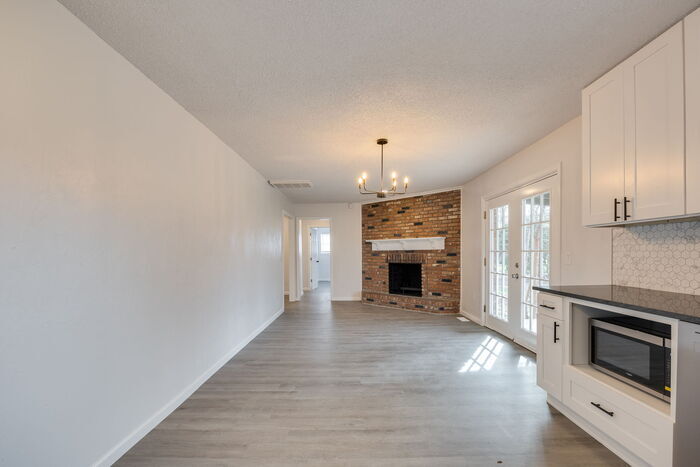 This 3 bedroom, 2.5 bathroom home offers 1,567 sq. ft. of living space with an attached 2-car garage. Inside, you’ll find fresh updates including new flooring, modern lighting, and a bright, open layout. The front living room provides a welcoming space, while a second living area features a brick fireplace and French doors leading to the backyard. The kitchen is designed with updated cabinetry, granite countertops, stainless steel appliances, and tile backsplash. The spacious primary suite includes a private bathroom with dual sinks. Two additional bedrooms and a full hall bath complete the layout, with a convenient half bath for guests. The backyard is fully fenced with plenty of room for outdoor activities, and laundry connections are available inside. Security deposit and 1 full month rent due prior to move-in. $129 one-time administration fee $24.95/month Resident Benefit Package - includes air filter delivery, credit reporting, tenant rewards, 24/7 maintenance coordination, utility connection concierge & online portal. Renter’s insurance is required This property allows self guided viewing without an appointment. Contact for details.