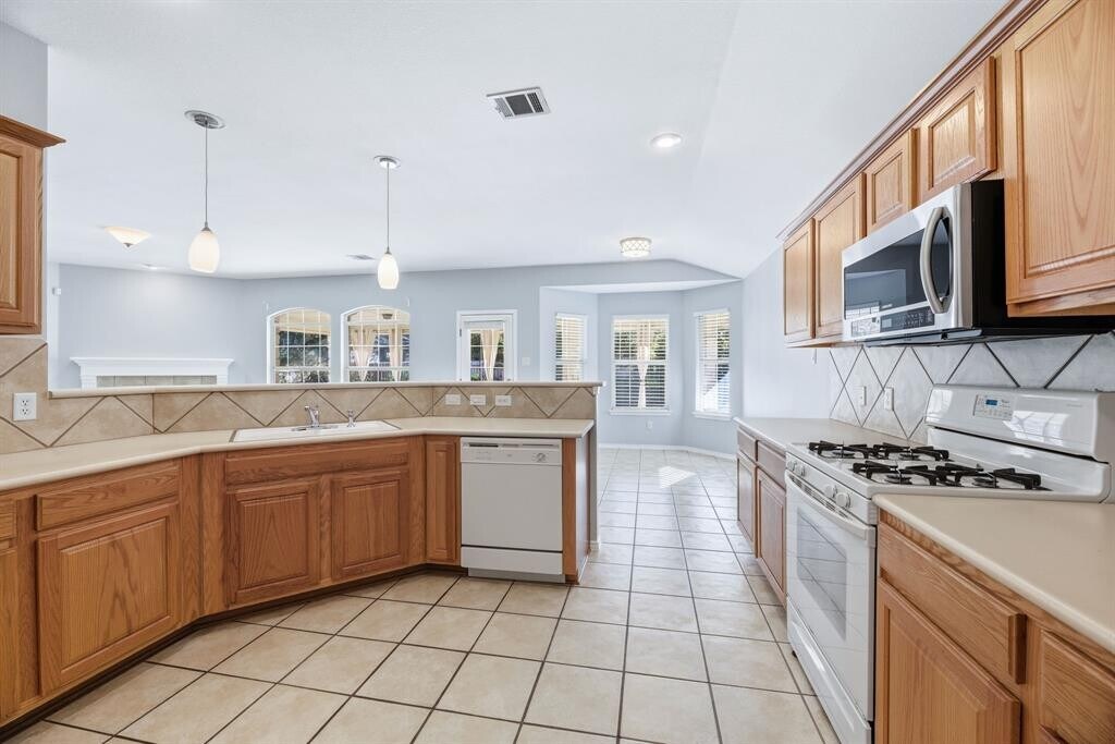 Gorgeous 1-story home in the sought-after Avery Ranch community. This beautifully maintained property features classic brick exterior, charming architectural details, and a manicured front yard with mature landscaping on a quiet, tree-lined street. Step inside to a spacious open floor plan with tile flooring throughout the main living areas and plush carpet in the bedrooms. The living room is filled with natural light and flows seamlessly into the dining area, creating an inviting space for both entertaining and everyday living. The kitchen offers a cozy breakfast nook, ample cabinetry, laminate countertops, and a large center island for extra prep and serving space, along with a full appliance package. The owner's suite includes a generous walk-in closet and a private bath with a dual vanity, soaking tub, and separate walk-in shower. Two secondary bedrooms share a full bath and are perfect for guests, family, or a home office setup. The backyard features a covered patio and plenty of green space for pets, play, or gardening. Located in the highly desirable Avery Ranch community, with access to top-rated schools in Leander ISD. Neighborhood amenities include multiple pools, tennis courts, hike-and-bike trails, playgrounds, and access to the Avery Ranch Golf Club. Just minutes from Brushy Creek Lake Park, Lakeline Mall, and countless dining and shopping options. Easy access to Parmer, 183, and the 45 Toll for a convenient commute to North Austin tech campuses and Downtown. A fantastic opportunity to own a move-in-ready home in one of Northwest Austin’s most established and amenity-rich communities. New stainless steel oven & dishwasher appliances to come!
