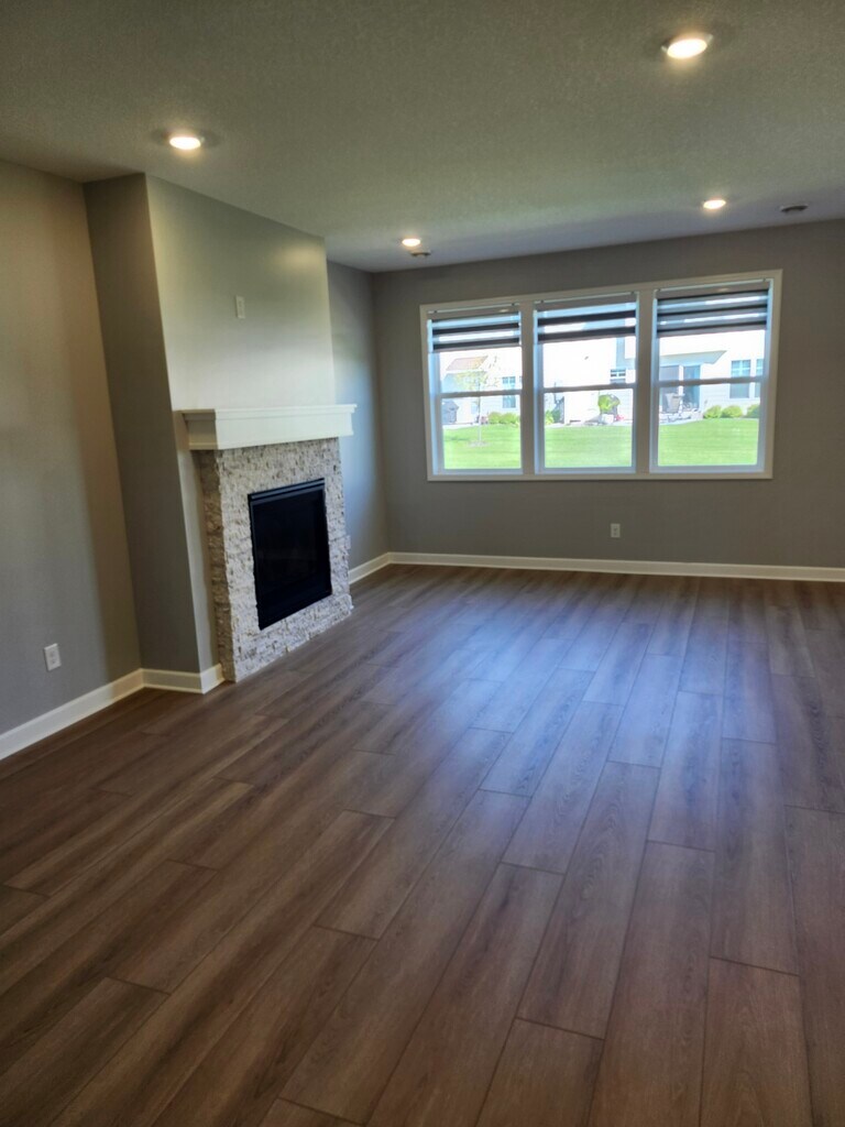 BRAND NEW SINGLE STORY HOME FOR RENT! This beautifully finished home features a large great room with expansive windows for natural light, a versatile dining area and an upgraded gourmet kitchen. The layout includes a luxurious owner's suite with a large walk in closet and beautiful bath, two additional bedrooms, an additional full size bathroom and a two car attached garage. Tenant has access to outdoor swimming pool. Tenant pays all utilities. No smoking. Tenant is not responsible for lawn care and snow removal and garbage is included in rent. Tenant must make three times rent for income. Credit, criminal background checks are run. SHORT TERM LEASE AVAILABLE AT A LOWER MONTHLY RATE. One dog allowed with a non refundable pet fee.