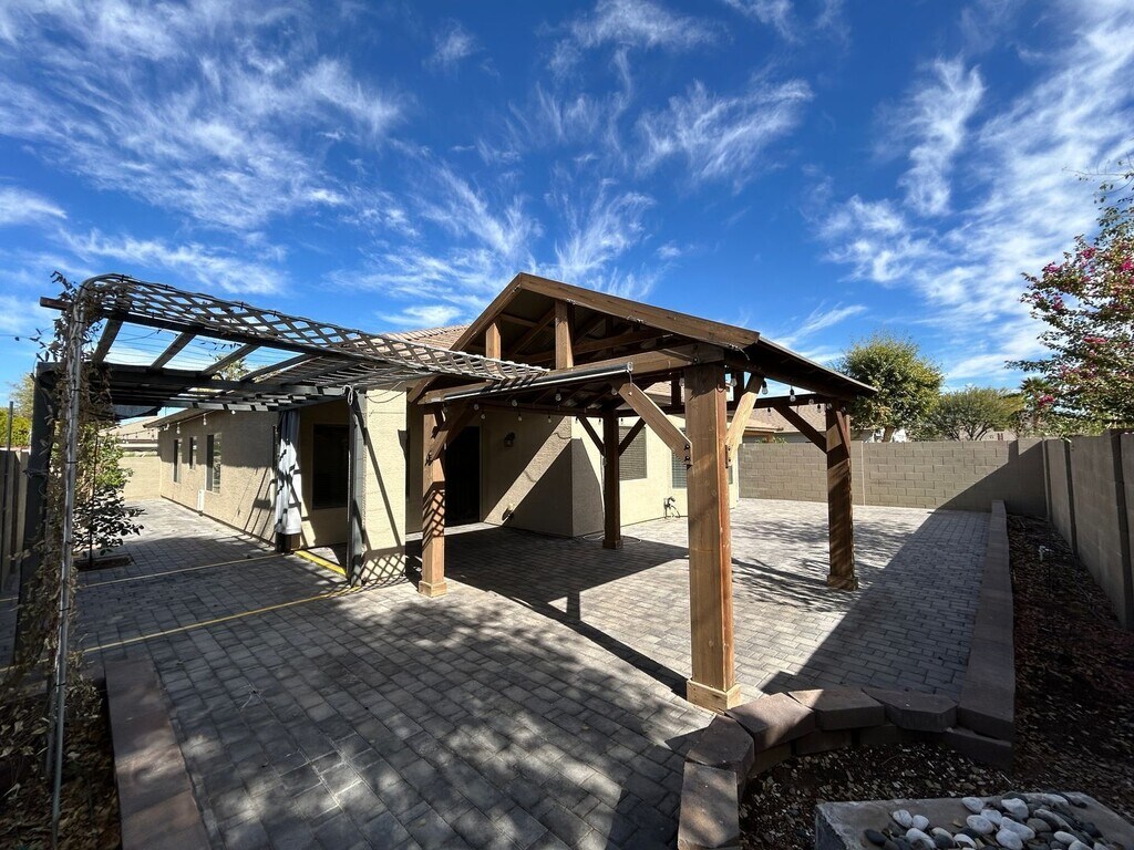 Discover the perfect blend of elegance and functionality in this stunning home, featuring ceramic tile and rich wood flooring that adds warmth and sophistication throughout. The kitchen and bathrooms boast exquisite granite slab countertops, beautifully complementing the custom cabinetry designed for both style and ample storage. A full suite of stainless steel appliances enhances the kitchen, making meal preparation a delight. Natural light filters through 2" wood blinds, highlighting the upgraded light fixtures and ceiling fans that add a modern touch to every room. The primary suite is a true retreat, offering a spacious walk-in closet and a luxurious walk-in shower designed for comfort and relaxation. Upgraded 4" baseboards add a refined finish, enhancing the home’s overall appeal. Step outside to an inviting backyard oasis featuring a ramada and a covered patio, perfect for outdoor entertaining or peaceful evenings at home. Concrete pavers create a stylish and functional outdoor space, complemented by lush fruit trees that add charm and natural beauty. A water softener system ensures superior water quality throughout the home, providing added convenience. This home offers a seamless combination of upgraded features and thoughtful details, creating a space that is as beautiful as it is functional. Don't miss the opportunity to make it yours! 12 month minimum lease. Sorry no Pets. The security deposit is equal to one months rent. The application fee is $55 per adult. To apply online go to INITIAL MOVE-IN COSTS: - Security Deposit - Minimum of 1X monthly rent but not greater than 1.5X monthly rent - First Month's Rent + $50/$65 Resident Services Package Setup Fee - Pets - If applicable, a non-refundable Pet Fee in the amount of $350 per pet is required RECURRING MONTHLY COSTS: - Monthly Rent - $50/$65 Resident Services Package (includes renters’ insurance, credit reporting, rewards program, pest control, air filter delivery, and more.) *** TO SCHEDULE A DAY AND TIME TO VIEW THIS PROPERTY, PLEASE GO TO *** ADDITIONAL DISCLOSURES: PPG Property Management LLC is an Arizona Limited Liability Company PPG Property Management does business in accordance with the Fair Housing Act. PPG Property Management does not discriminate against anyone based on race, color, religion, sex, handicap, familial status, or national origin. PPG Property Management is not responsible for any error or omission in the wording or content of this information. The information contained in this ad is accurate to the best of our knowledge. PPG Property Management 15411 W Waddell Rd, Suite 106, Surprise, Arizona, 85379 By submitting your information on this page you consent to being contacted by the Property Manager and RentEngine via SMS, phone, or email.
