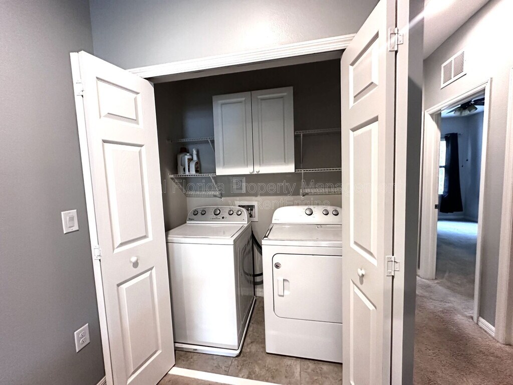 Move in ready - this 1396 sq ft, 3 bedroom, 2.5 bath townhouse in the gated Mitchell Creek community in Oviedo has so much to offer! From the convenience of being located in a spacious cul de sac, directly across from the pool and mailboxes to the functional, open floor plan that is both a well designed, practical layout with usable square footage, lots of closets and ceramic tile flooring throughout the main living areas for a clean, durable finish. The kitchen features granite countertops, 42'' cabinets, stainless steel appliances, and a seamless flow into the dining and living spaces, great for everyday life and gatherings alike. Upstairs, you'll find three carpeted bedrooms, including a spacious primary suite with its own private bath and plenty of closet space. When you step outside, you'll love the private screened lanai that gives you a quiet place to relax or enjoy a morning coffee. The attached garage adds convenience, with room for parking and storage. Mitchell Creek offers gated security along with amenities like a sparkling pool and a playground. You'll By submitting your information on this page you consent to being contacted by the Property Manager and RentEngine via SMS, phone, or email.