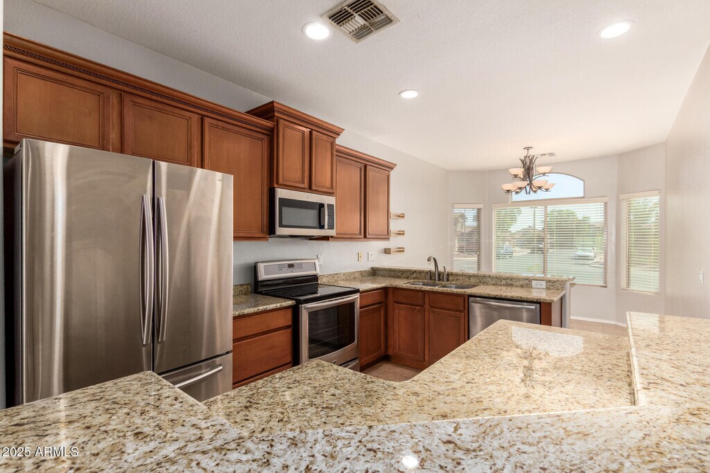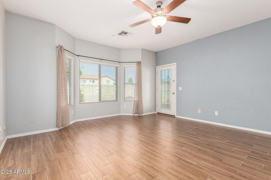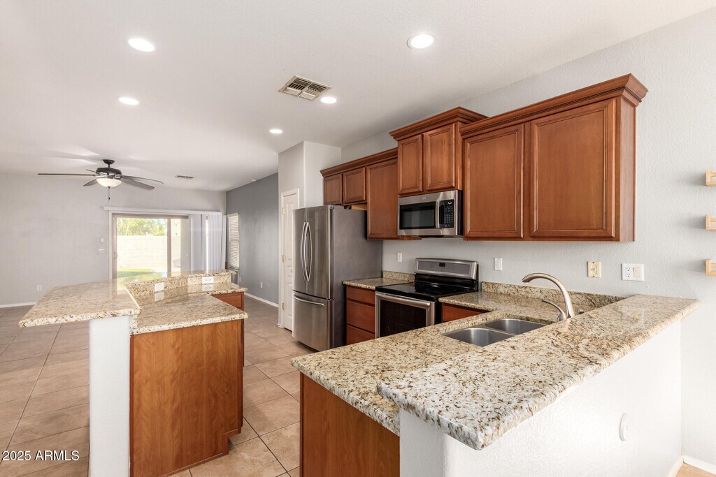 SOLAR,SOLAR,SOLAR!!!!! NEW PRICE IMPROVEMENT! Tenant will be charged $175.00 per month for Solar in addition to the monthly rent. Lovely home in the beautiful Royal Ranch neighborhood. This home is move in ready. Stainless appliances,granite countertops in the kitchen with a breakfast nook. Washer and Dryer included. Bay window in kitchen and master bedroom. Beautiful backyard with synthetic grass for easy care. Two large overhead storage racks in the garage. Close to shopping,restaurants,baseball and Surprise Water Park and activity center. ALL THIS WITH SOLAR!!!