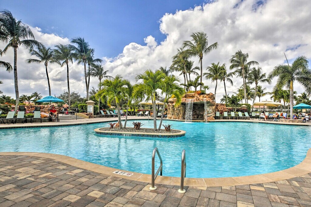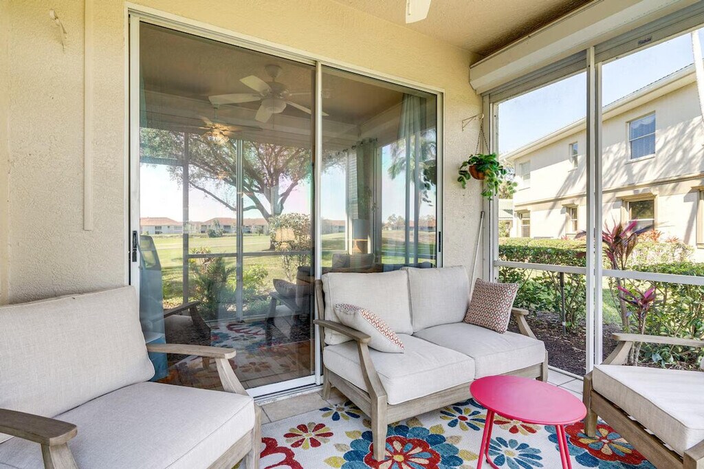 Feel at home in this 2-bedroom, 2-bath condo in Fort Myers, offering a comfortable base for an extended stay. This single-story condo is located on the 1st floor and requires a small step to enter. This condo features 3 Smart TVs, a furnished screened porch, a dedicated workspace, and a 6-person dining table. The kitchen is equipped with a dishwasher, refrigerator, stove/oven, microwave, Mr. Coffee drip coffee maker, toaster, toaster oven/air fryer, and cooking basics. You'll also have access to free Wi-Fi, central A/C and heat, a washer and dryer, linens/towels, and paper products. Enjoy access to the community's outdoor pool and hot tub, which are open year-round, as well as 4 pickleball courts, 7 tennis courts, a fitness center, and a library. Parking is available with a carport for one vehicle and a community lot for one vehicle. Nestled in the heart of Fort Myers, this condo offers easy access to shopping, dining, and outdoor recreation. It's conveniently located near Hammond Stadium and Edison Mall. Smoking, pets, events, parties, and large gatherings are not allowed. Guests must be at least 25 years old to book. The community golf course is not available for guest use. [SI]