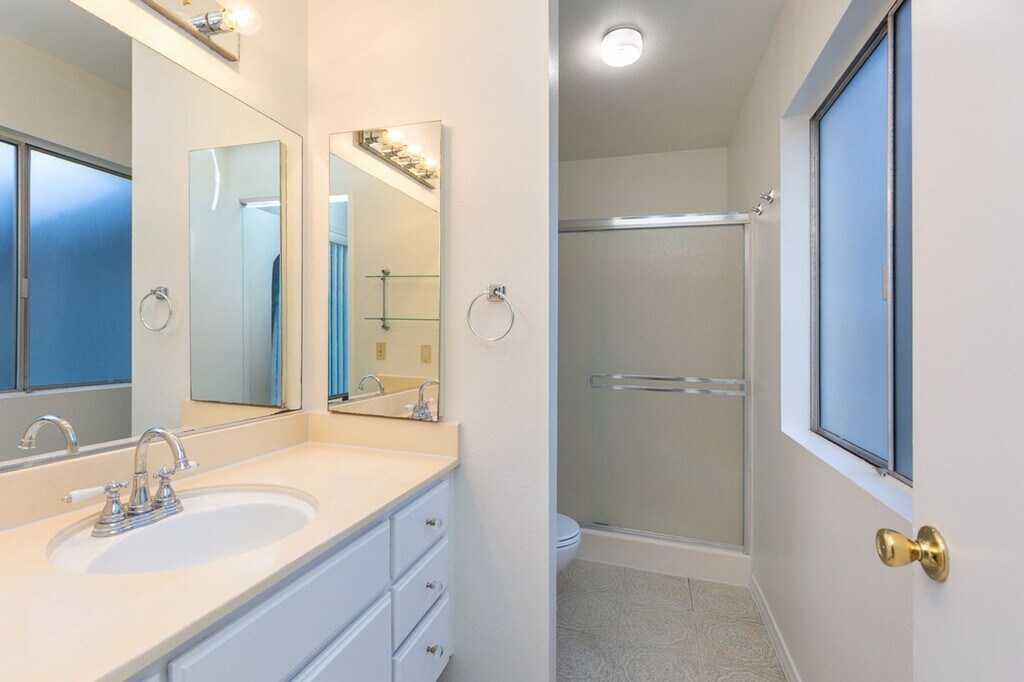 This 3 bedroom 2 bath home features formal living room, dining room, oversized family room and large fully fenced rear yard. Living room features vaulted ceilings with floor to ceiling stone fireplace. Dining room off of kitchen with ceiling fan, 2 skylights and French doors leading into large family room. Kitchen features new 5 burner gas stove with passthrough to family room. Family room features vaulted ceilings, track lighting, wood burning stove and sliding glass door to rear yard. Hall bath features tub/ shower combo. Master bedroom features walk in closet and attached master bath with fully enclosed stall shower. Large fully fenced rear and side yards with new artificial turf area, new bark and drip irrigation. Home features whole house fan as well as central heating and air. Washer and dryer hookups in attached 2 car garage. Can accommodate both gas and electric dryers. Front driveway can accommodate 3 vehicles. Walking distance to Silverset Park and minutes away from Walmart and numerous other shops and eateries. Meridian Property Management Inc. CA Corp DRE Lic# 01856665