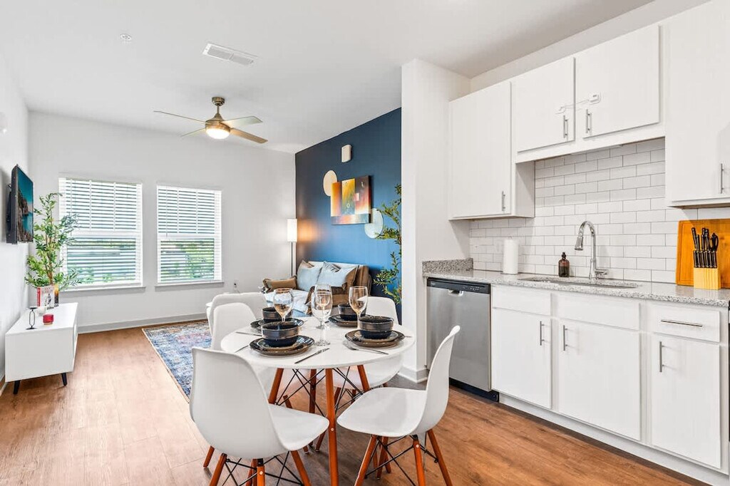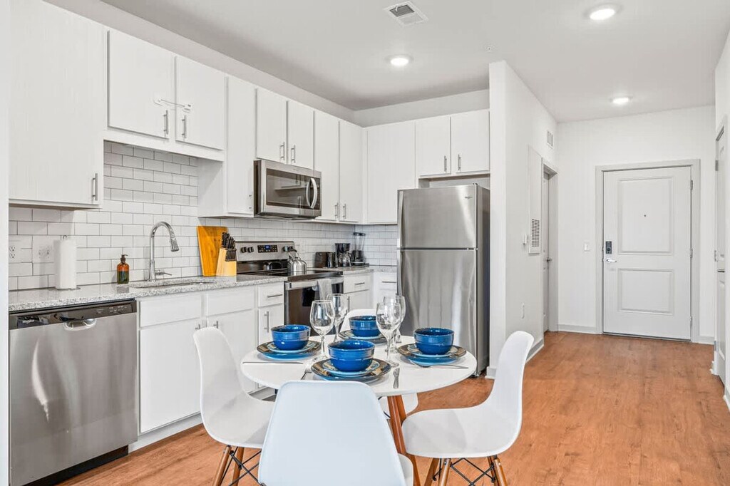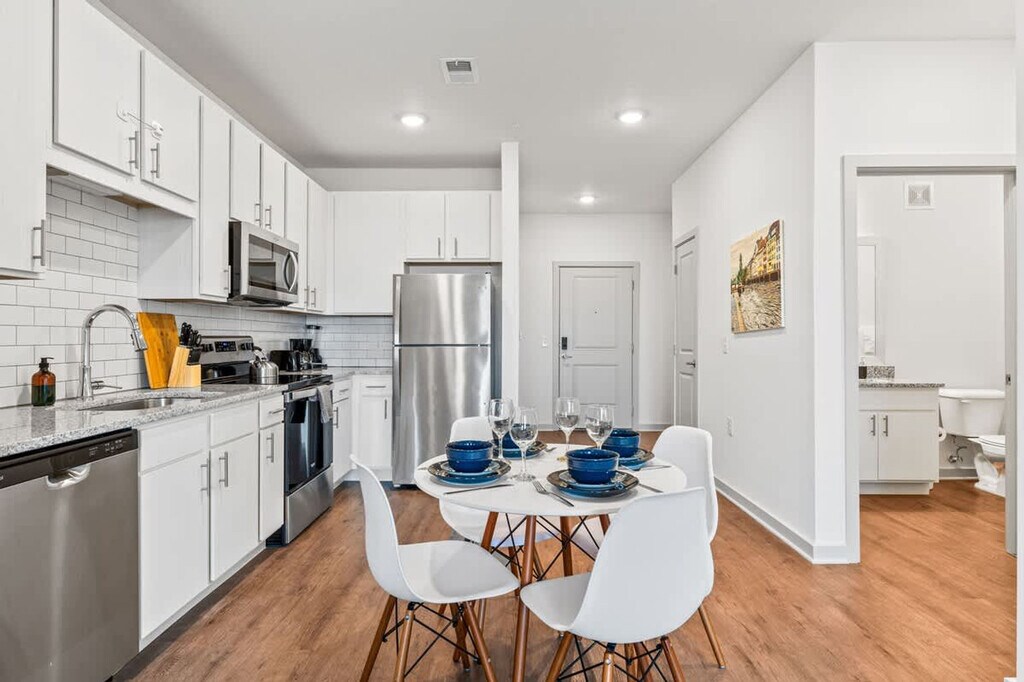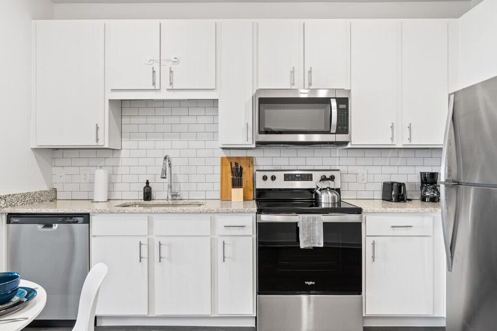 The advertised rate of $3,265/month is the lowest available price, based on a 30 day(s) stay with a move-in date of August 2, 2026. Rates vary depending on the duration of stay, season, and other parameters. For exact pricing and additional pricing components, please visit our website and enter your desired move-in and move-out dates. The rate is applicable when billed upfront; it can be higher if billed in multiple payments. Feel at home in this perfectly located apartment, just 10 minutes from Disney Parks and a short drive to Universal Studios. This cozy space sleeps four people and offers a peaceful retreat with all the comforts of home. The apartment features a living room with a queen-size sofa bed and a 50" smart TV. The fully equipped kitchen includes a stove, microwave, refrigerator, coffee maker, dishwasher, cookware, utensils, and a dining table with four chairs. There is also an in-unit washer and dryer for your convenience. The bathroom offers a relaxing bathtub and shower, along with complimentary toiletries such as shampoo, conditioner, shower gel, hand soap, towels, and a hairdryer. Complimentary parking is available for up to three cars. An EV charger is available for electric vehicles, subject to availability, with a fee applied when used. Enjoy the vibrant shops, restaurants, and bars in the local area, all within a 5-minute drive or walking distance. You're also close enough to hear Magic Kingdom fireworks at night! Pets are welcome, but some breed restrictions apply. Quiet hours are between 10 PM and 8 AM. [SI]