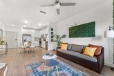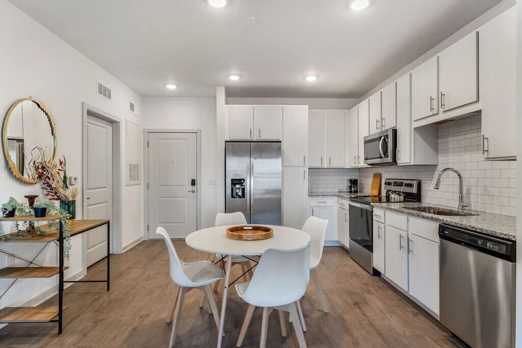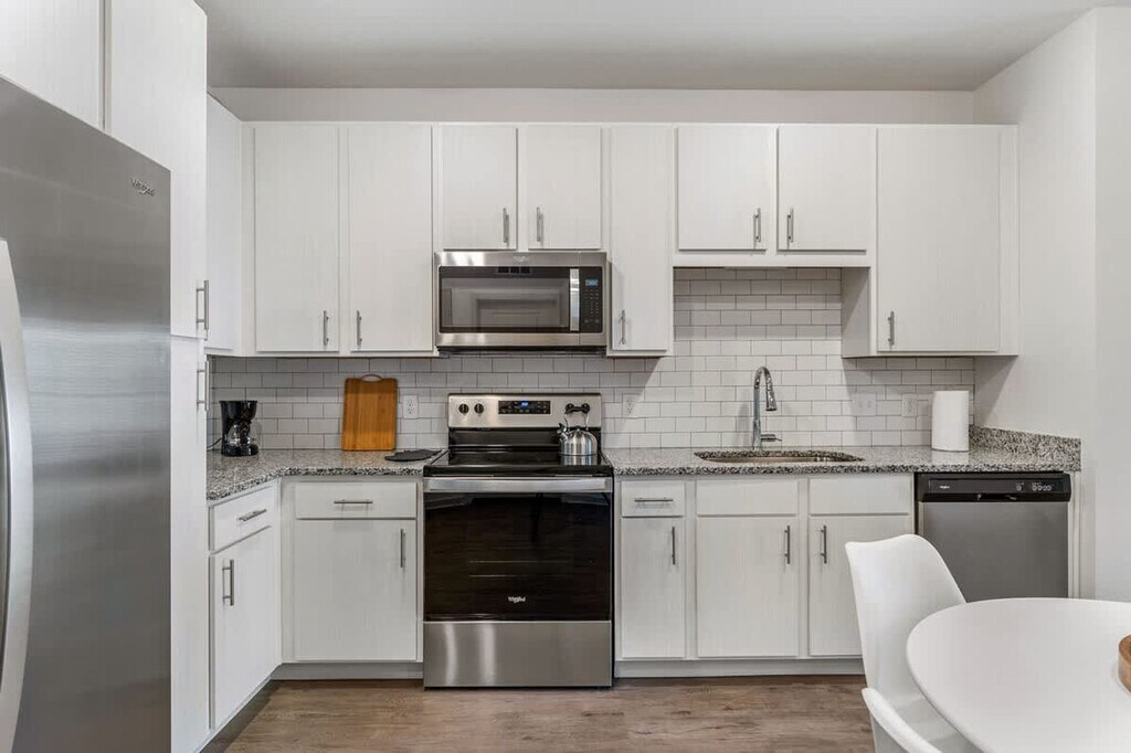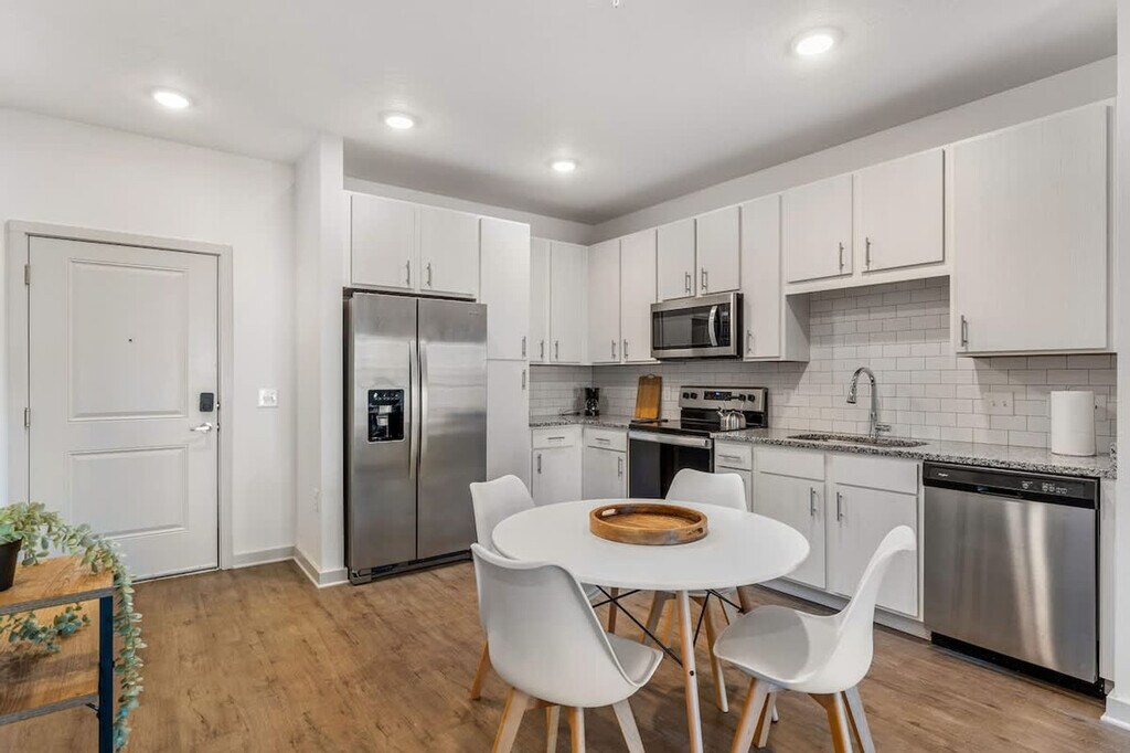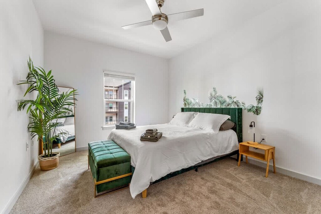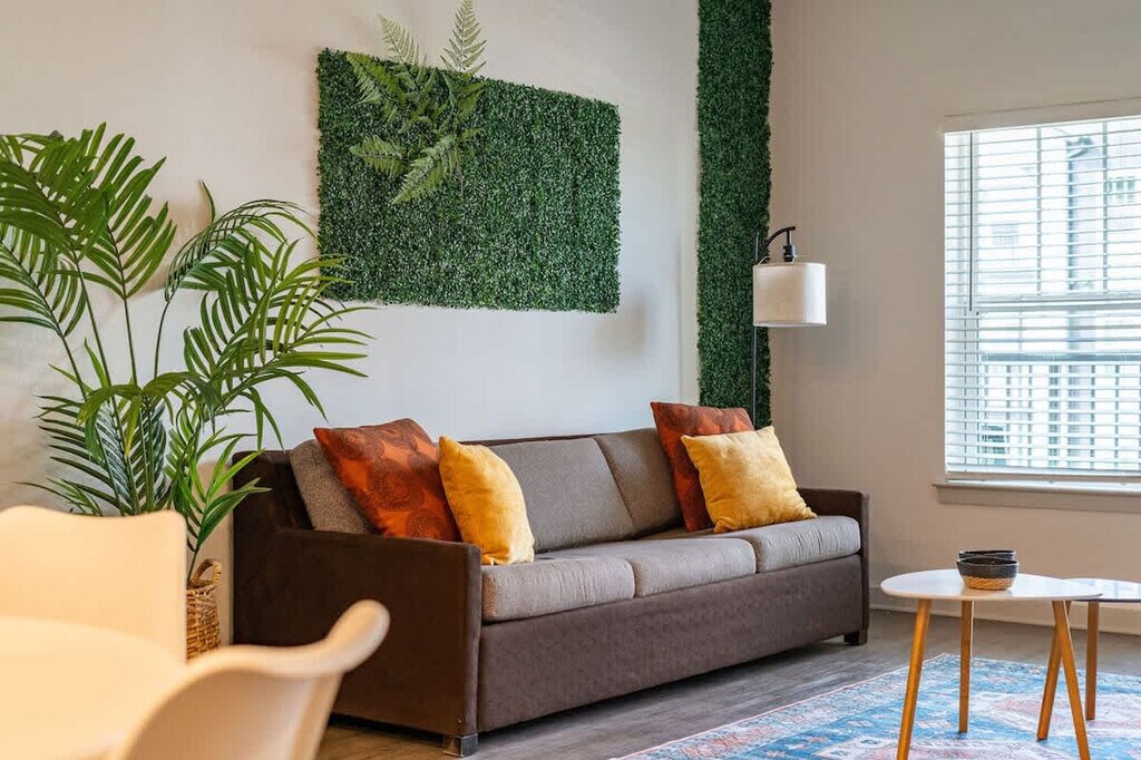 Feel at home in this perfectly located apartment in Bay Lake, just 10 minutes from Disney World. This property sleeps four people and offers a peaceful retreat with all the comforts of home. The apartment features a fully equipped kitchen with a stove, microwave, refrigerator, coffee maker, dishwasher, full set of cookware and utensils. For your convenience, there is also an in-unit washer and dryer. Enjoy a relaxing space to unwind after your adventures with a 55” smart TV in the living room and a 43” smart TV in the bedroom. The apartment also features a private balcony with a seated area. Three free parking spots are available on-premise. An EV paid charger is present on location, but availability or available space cannot be guaranteed. Nestled in the heart of Bay Lake, this charming property offers the perfect home base for an unforgettable Orlando vacation. Located just minutes away from world-famous theme parks, delicious dining options, and a variety of recreational activities, you'll have everything you need to create cherished memories. Universal Studios/Island of Adventure and SeaWorld are also easily accessible. The apartment is a short drive to the Tibet-Butler Nature Preserve and Bay Lake. There are many different culinary options as well as stores of every kind ranging from Target, Ross, and Publix supermarket within walking distance. Quiet hours are between 10 PM and 8 AM. To enhance neighborhood safety, the building management kindly asks all guests staying at the property to provide their full name, surname, and date of birth during the reservation process. Pets are welcome, but some breed restrictions apply. [SI]