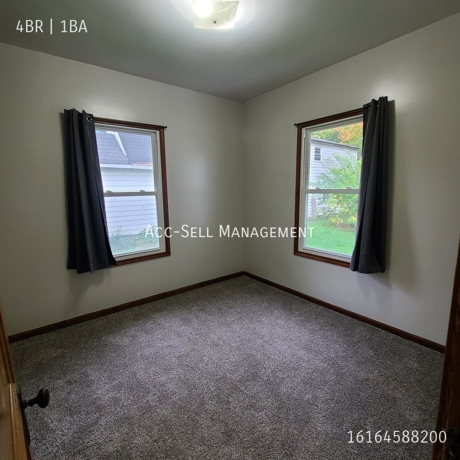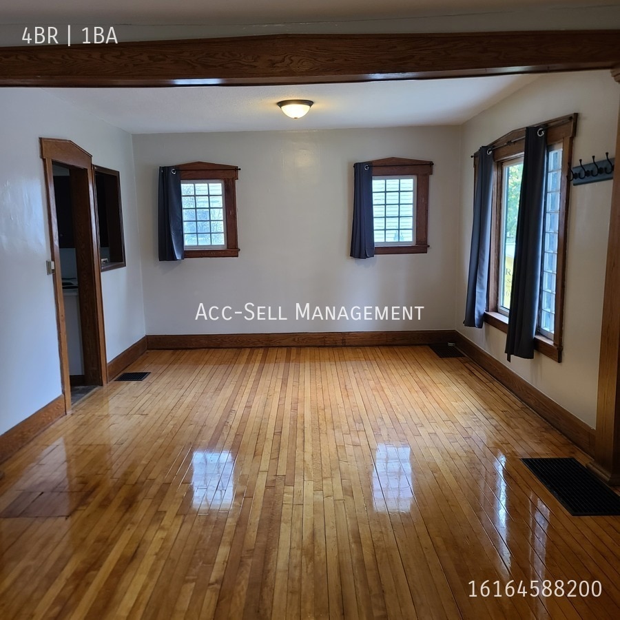 Please call when at the front door keypad for entry. Rooms and Interior: Craftsman-style bungalow with spacious living and dining rooms featuring hardwood floors and wood trim throughout. Covered front porch adds curb appeal and charm. Kitchen and Bath: Stainless steel fridge, electric stove, hardwood cabinets, laminate kitchen counters. Full-size bathroom with tub on the main level. Utilities and Extras: Forced air heat, washer/dryer located in the basement. Building and Surroundings: Single-family home with attached garage and large grassy yard. Quiet, tree-lined lot with long private driveway. Lease Terms Pets allowed with a $350 deposit and $50/month per pet. Tenant pays all utilities. No smoking. Application fee: $40 per adult. Highlights Spacious layout with 4 bedrooms and a full bathroom. Hardwood floors throughout main living and dining room. Attached garage with space for parking and storage. Back yard is near a nature trail and park. Large yard ideal for outdoor enjoyment. Lawnmowing included in rent Located in Marne with easy access to Grand Rapids and major highways. Contact Acc-Sell Management