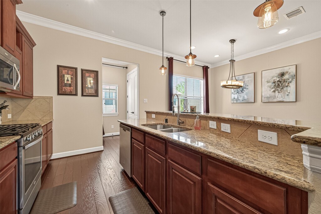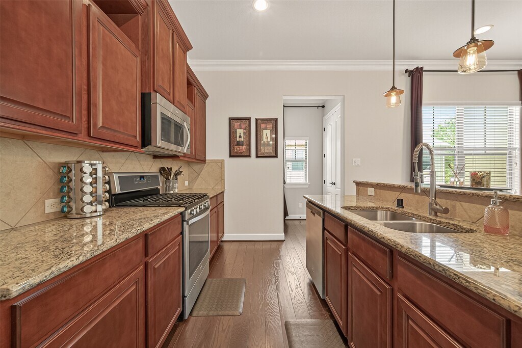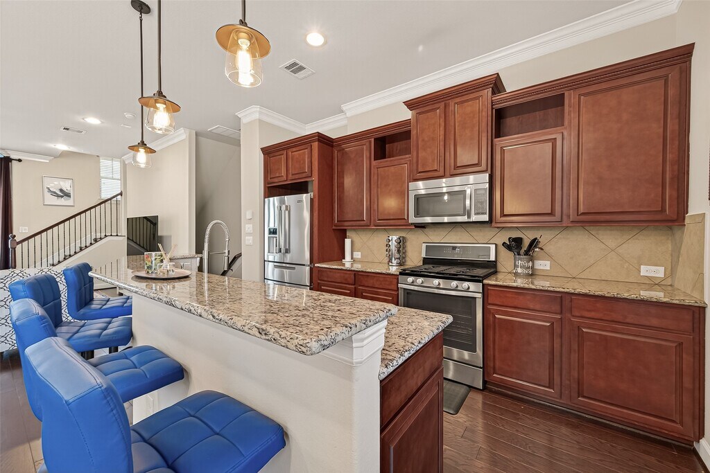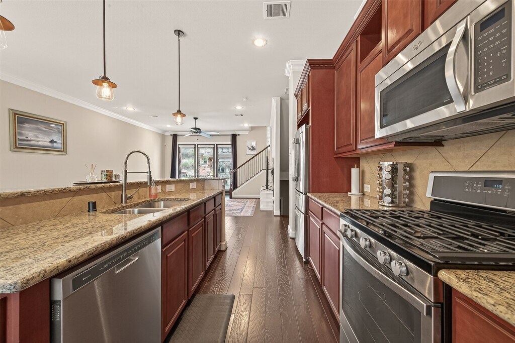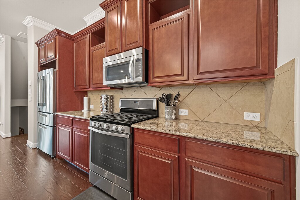 Beautiful 3-story townhome for rent just steps from Kickerillo-Mischer Nature Preserve and the restaurants and shops at Vintage Park! This well-designed home offers an open living area with wood floors,high ceilings,and a modern kitchen featuring granite countertops,42” cabinets,stainless steel appliances,and a large island—perfect for everyday living and hosting guests. The private owner’s suite includes its own balcony and a spa-inspired bath,while the first-floor guest suite provides comfort and privacy for visitors or roommates. Located in a gated community with great amenities,you’ll enjoy access to a refreshing pool,cabana,and outdoor kitchen. Low-maintenance lifestyle—HOA takes care of exterior upkeep. Move in and enjoy effortless living in one of Northwest Houston’s most desirable areas! MLS# 11580697