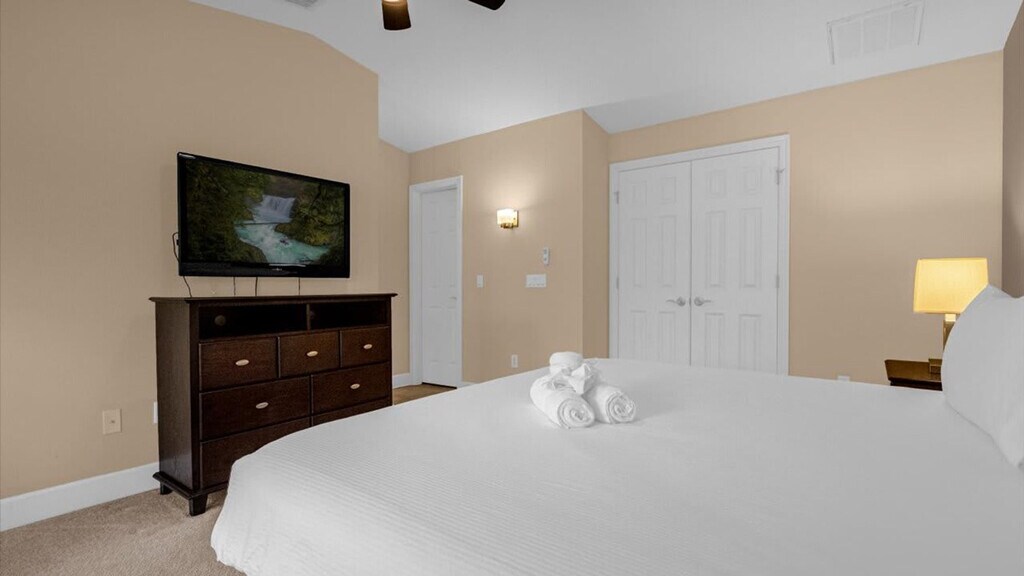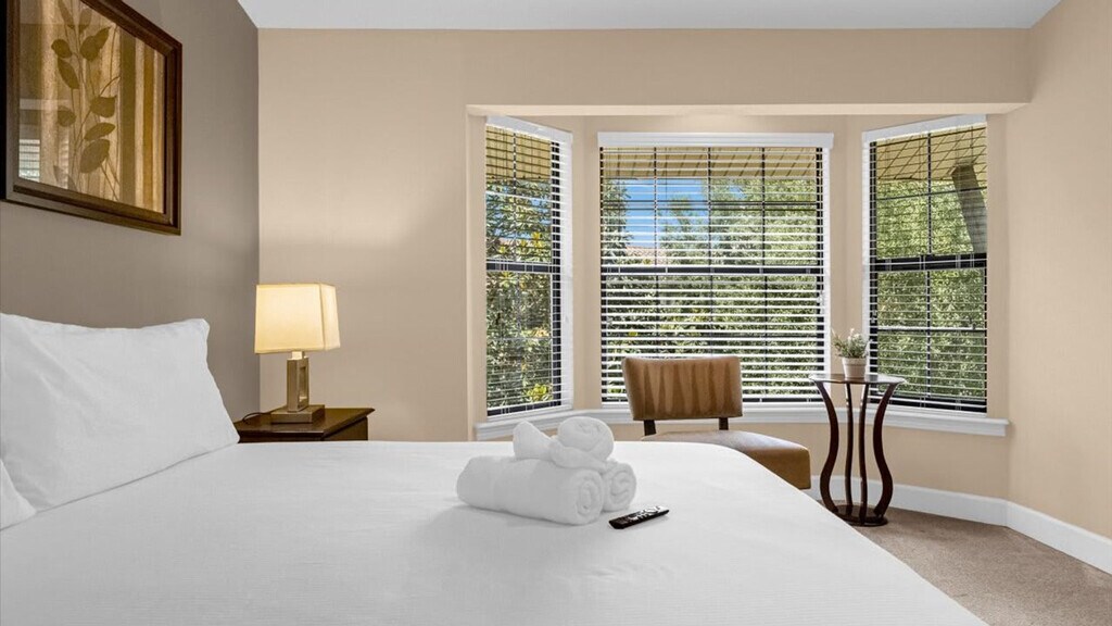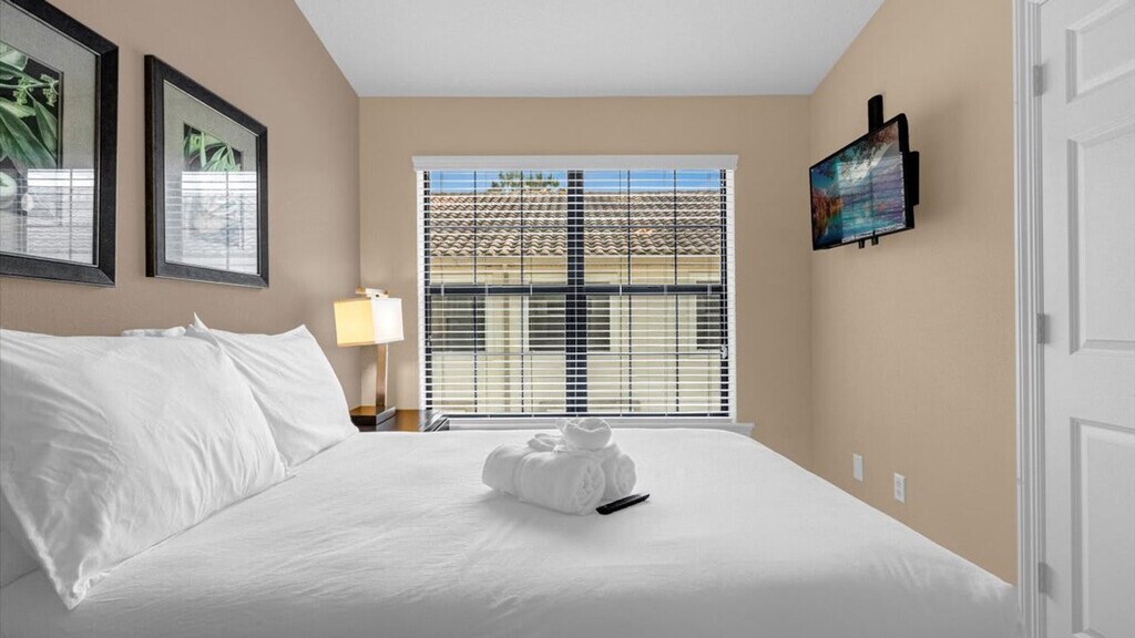 Step into a beautifully designed, split-level townhome that blends stylish modern décor with practical comfort across three spacious stories. Whether you're here to relax or explore, this thoughtfully crafted space offers the perfect balance of luxury and convenience. This townhome features 4 bedrooms and 3.5 bathrooms, making it perfect for families or group stays. Welcome to this elegant townhome where comfort meets elegance. The master bedroom boasts a king-size bed with a private en-suite bathroom, while the second and third bedrooms each offer a full-size bed with a shared bathroom. The fourth bedroom features a queen-size bed with a private en-suite bathroom. The gourmet kitchen includes granite countertops and high-end stainless steel appliances, complemented by open-concept living and dining areas ideal for entertaining or relaxing. Elegant interiors with contemporary design touches enhance the overall ambiance. We are delighted to welcome your pets to our property with a pet fee. Only dogs are allowed, with a maximum of two per reservation. There are two designated parking spots in the carport of each unit and extra free parking spots by the gate. Located just 1.5 miles from Disney, this townhome offers convenient access to Interstate 4 and Beachline Expressway, making it a quick drive to Orlando's top attractions and Central Florida hotspots. Lake Buena Vista is a vibrant neighborhood situated in the heart of the Orlando-Kissimmee metropolitan area in Florida, renowned for its close proximity to world-famous theme parks and entertainment complexes. At the center of Lake Buena Vista is the Walt Disney World Resort, one of the most iconic and visited tourist destinations in the world. Beyond Disney, Lake Buena Vista is also home to other major attractions such as Disney Springs, Universal Orlando Resort, SeaWorld Orlando, and the Orlando Vineland Premium Outlets. Guest messages will be replied to within 20 minutes. Please ensure the A/C temperature remains set at or above 72ºF to prevent system issues. Quiet hours are between 22:00 and 8:00. Please comply with the parking regulations. [SI]