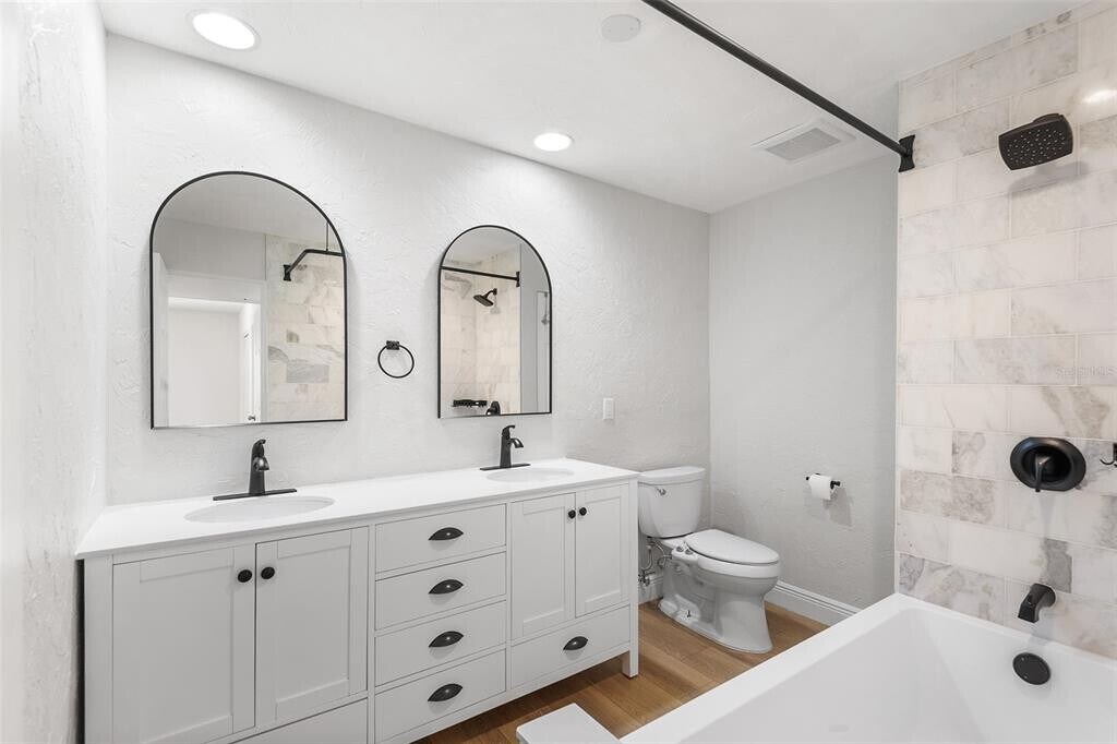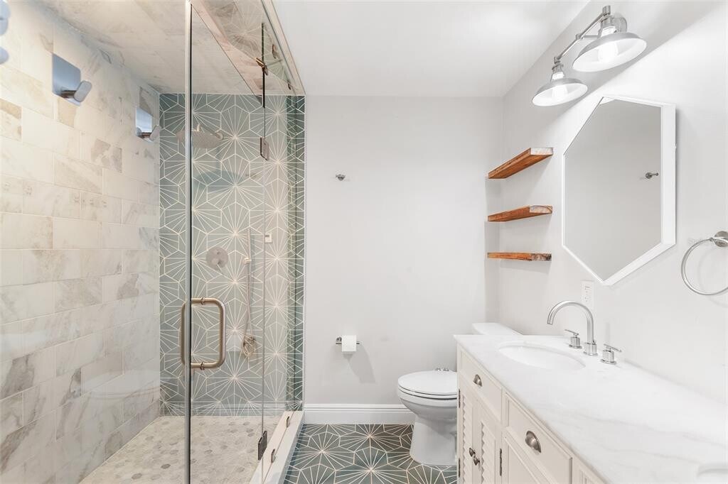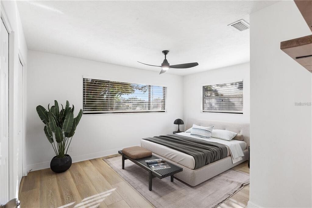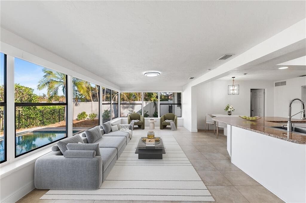 Welcome to your fully updated 3-bedroom,2-bathroom retreat in the heart of Ponderosa Shores,one of St. Petersburg's most sought-after neighborhoods. This light-filled single-family home blends modern luxury with thoughtful design,offering over 1,900 sq ft of stylish living space,a sparkling private pool,and a prime location just moments from vibrant downtown St. Pete and a quick drive to Tampa's bustling scene. The gourmet kitchen features sleek white shaker cabinets,granite countertops,a stainless steel farmhouse sink,stainless steel appliances,and a trendy chandelier over the island,perfect for entertaining. The luxurious primary suite includes a spacious bedroom with ceiling fan,barn-door entry to a spa-like en-suite bath featuring a glass-enclosed steam shower,and custom built-in closet system in the walk-in closet. Two generous guest rooms come with wood-look flooring and ample natural light,complemented by a full guest bath with double vanities,marble tiles,and a deep soaking tub/shower combo. Enjoy expansive indoor-outdoor living in the Florida room with large windows overlooking the fenced backyard and pool,ideal for relaxation or a home office,then step out to the paver patio and private in-ground pool with a large spa that overlooks the beautiful park. Additional conveniences include a dedicated laundry room with stacked washer/dryer and tall storage cabinet,adjustable closet organizers throughout,tray ceilings,recessed lighting,and fresh neutral paint for a contemporary feel. Outside,a brick-paver driveway,attached garage,mature oak trees for shade,and a fully fenced yard provide privacy and space for pets. Enjoy the best of Florida living with retail therapy,eclectic dining,and nightlife in downtown St. Petersburg just a short bike ride or drive away,and hop over the bridge to Tampa for more shopping,sports,and entertainment,all within easy reach. Shore Acres offers a peaceful suburban vibe. This move-in-ready gem is available for immediate occupancy,with pets considered on a case-by-case basis. Schedule your private tour today and make this Shore Acres stunner your new home! MLS# O6359776